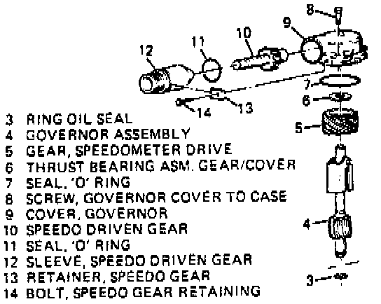 4. Remove speedometer driven gear and sleeve assembly or speed sensor if equipped.
