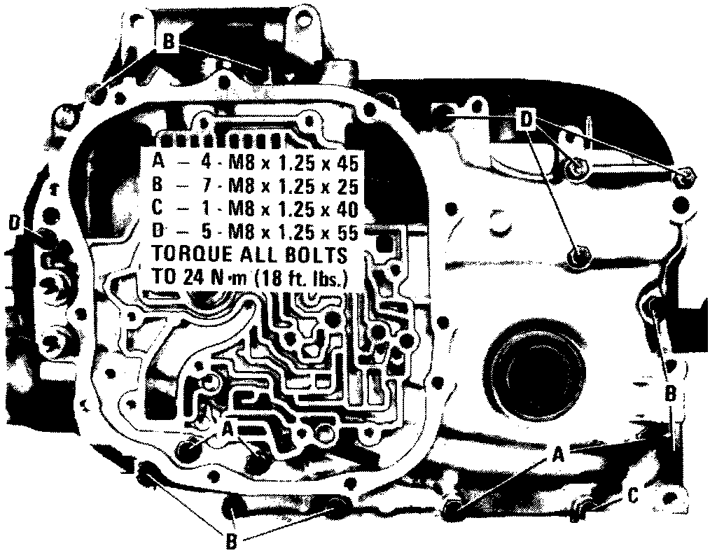 15. Install case to case gasket and case cover. Refer to images for location of case cover bolts. Coat bolt A with thread sealing compound before installation.