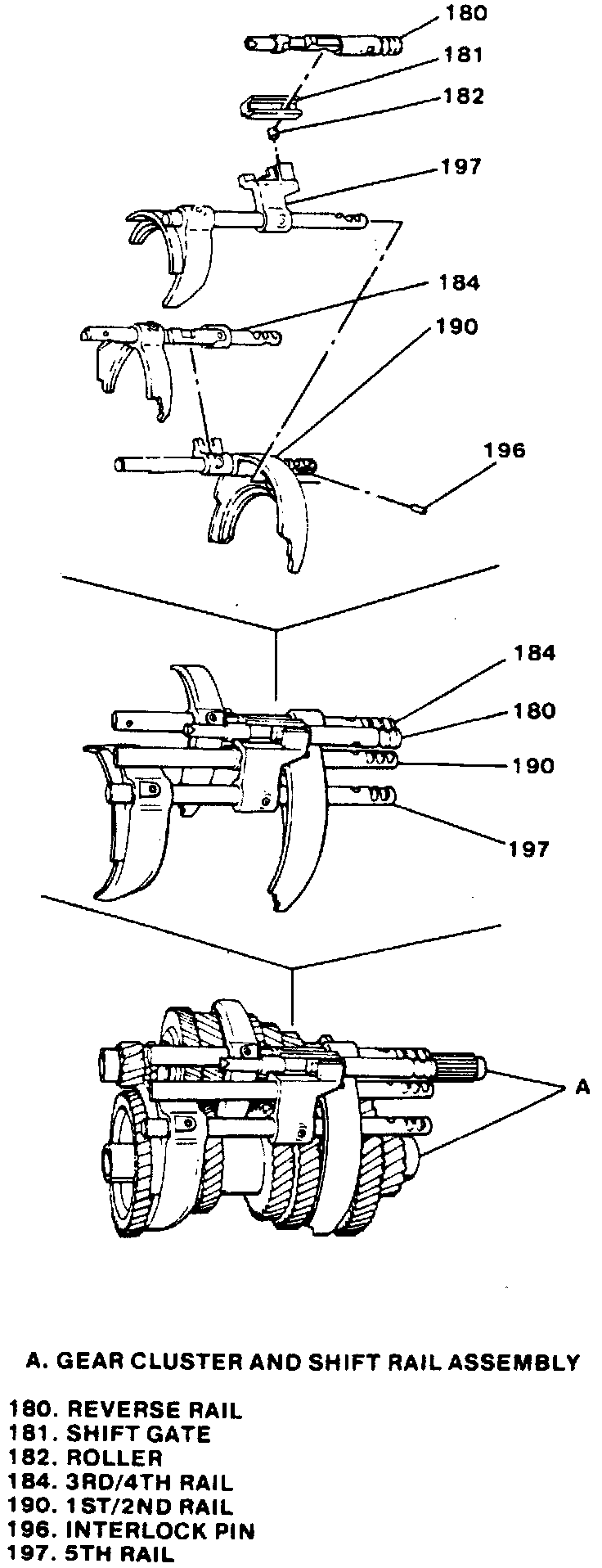 d. Install 5th shift rail (197).