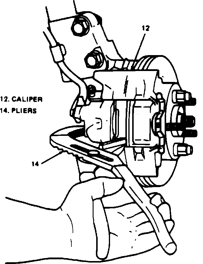 3. Position suitable pliers over inboard pad and housing and squeeze pliers to compress caliper piston.