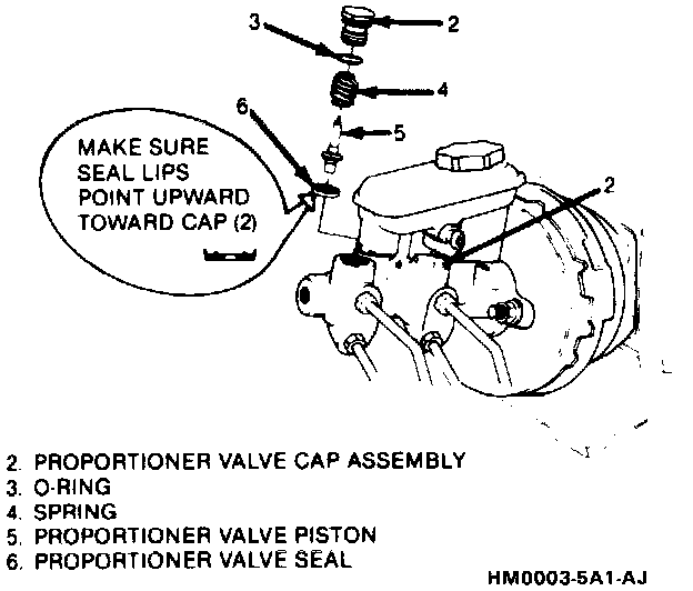- Install proportioner valve caps in master cylinder body and torque to 27 Nm (20 lbs. ft.).