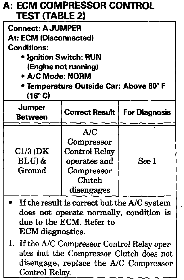 Test A ECM Compressor Control Test Table 2: