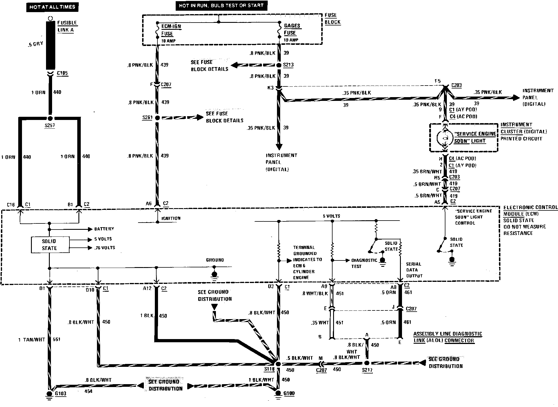 Fuel Injection Wiring Circuit (Ground, Power & Service Engine Soon Light):