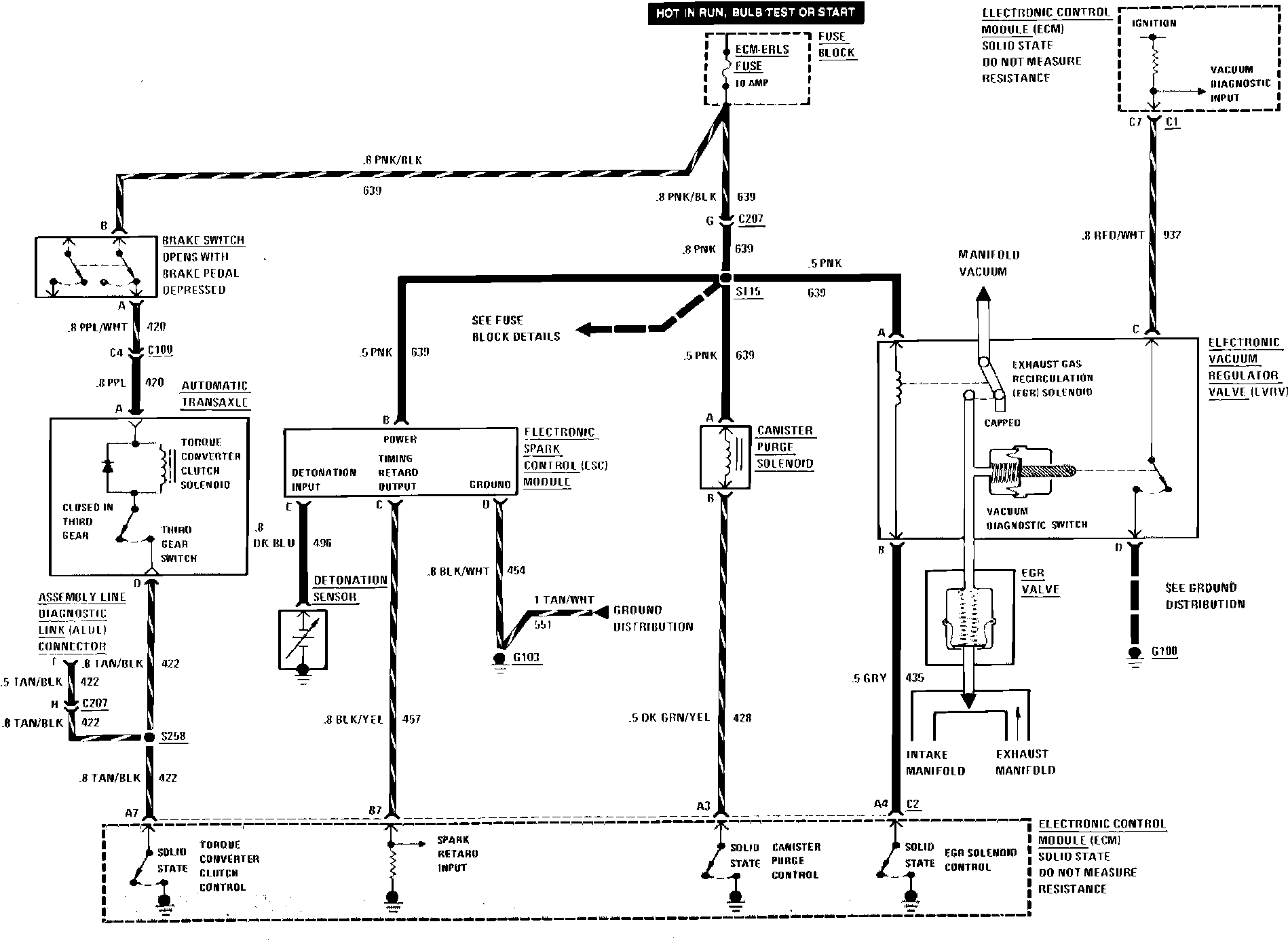 Fuel Injection Wiring Circuit (Electronic Spark Control, Emission Controls & Torque Converter Clutch):
