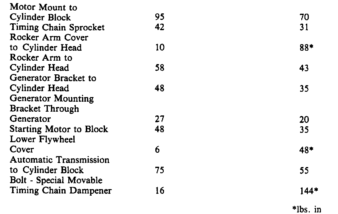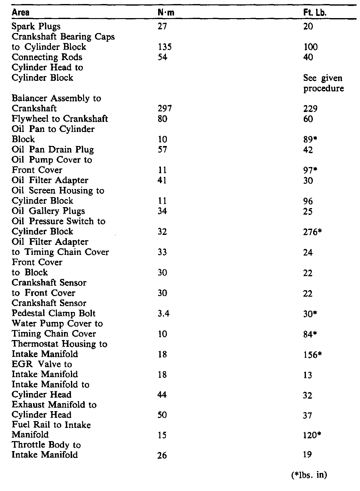Continued Torque Specifications: