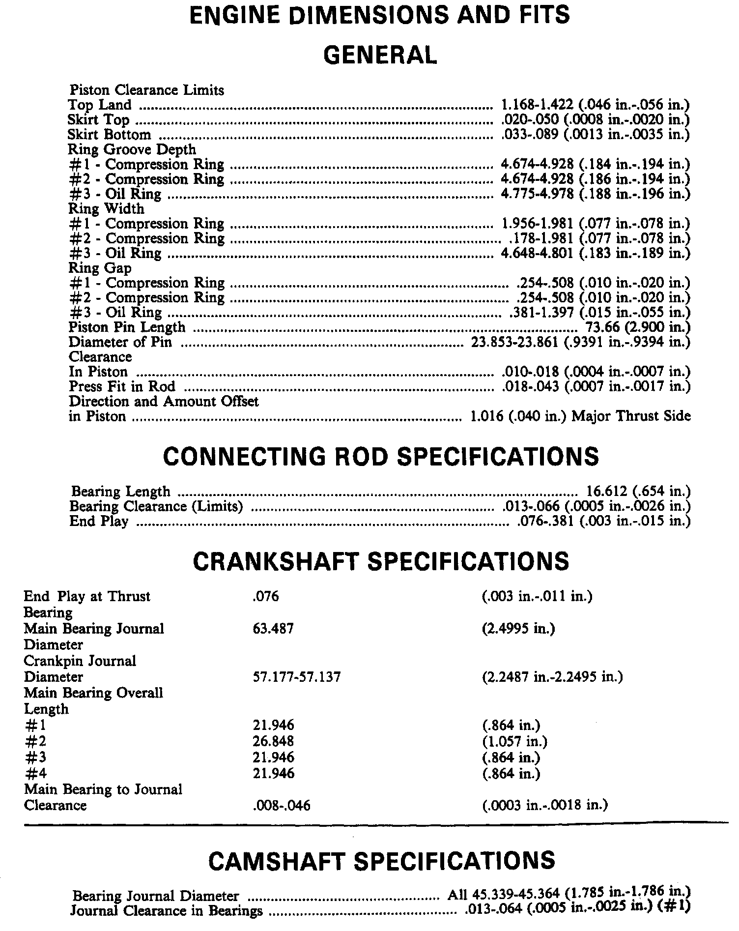 Continued Engine Specifications: