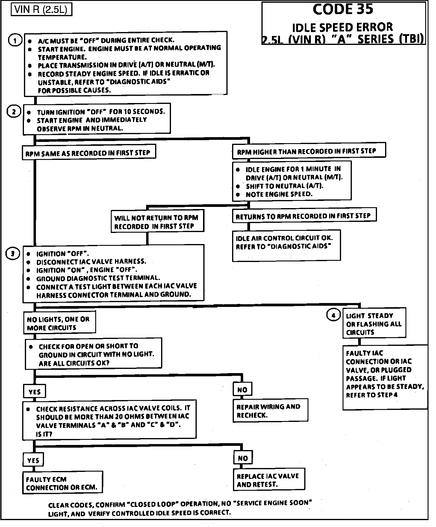 Code 35 will set when the closed throttle engine speed is 150 rpm above or below the desired idle speed for 20 seconds.