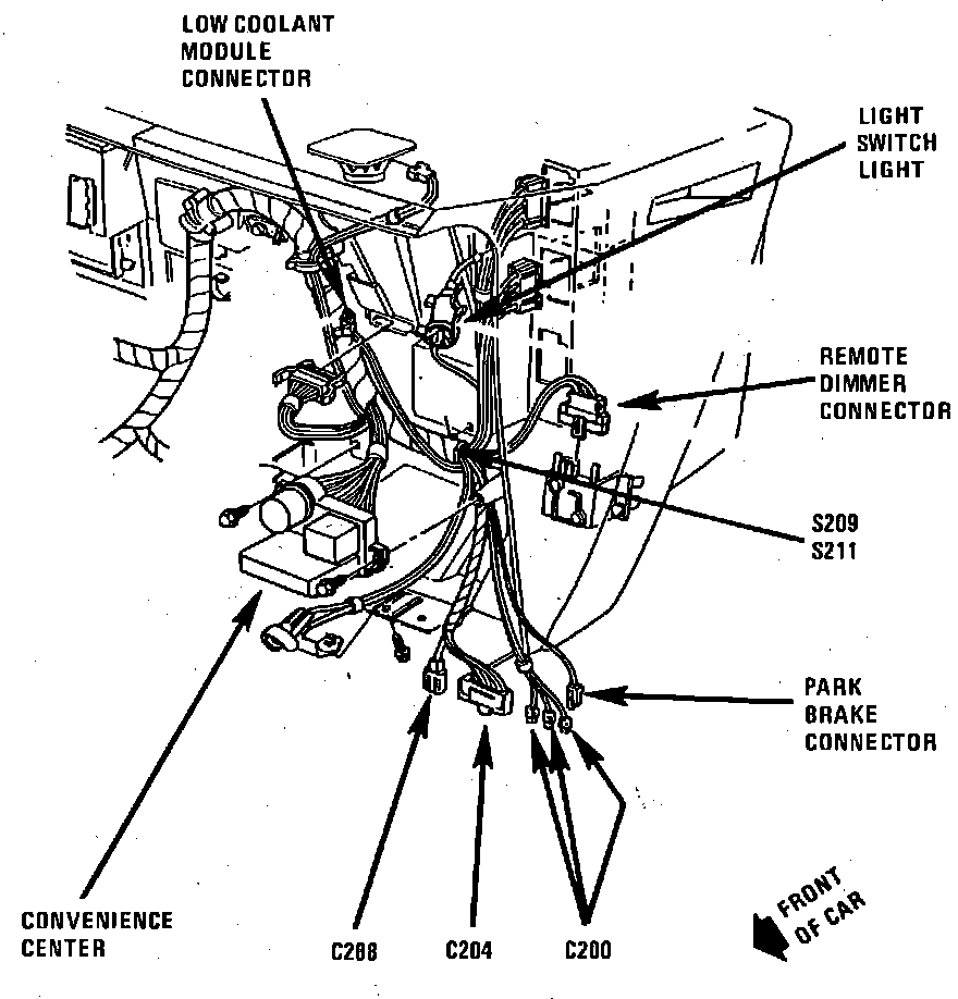 The Low Coolant Module is located behind LH side of I/P, left of steering column.