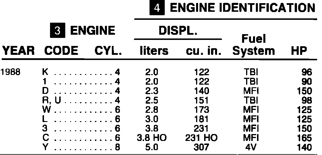 ENGINE IDENTIFICATION 1988: