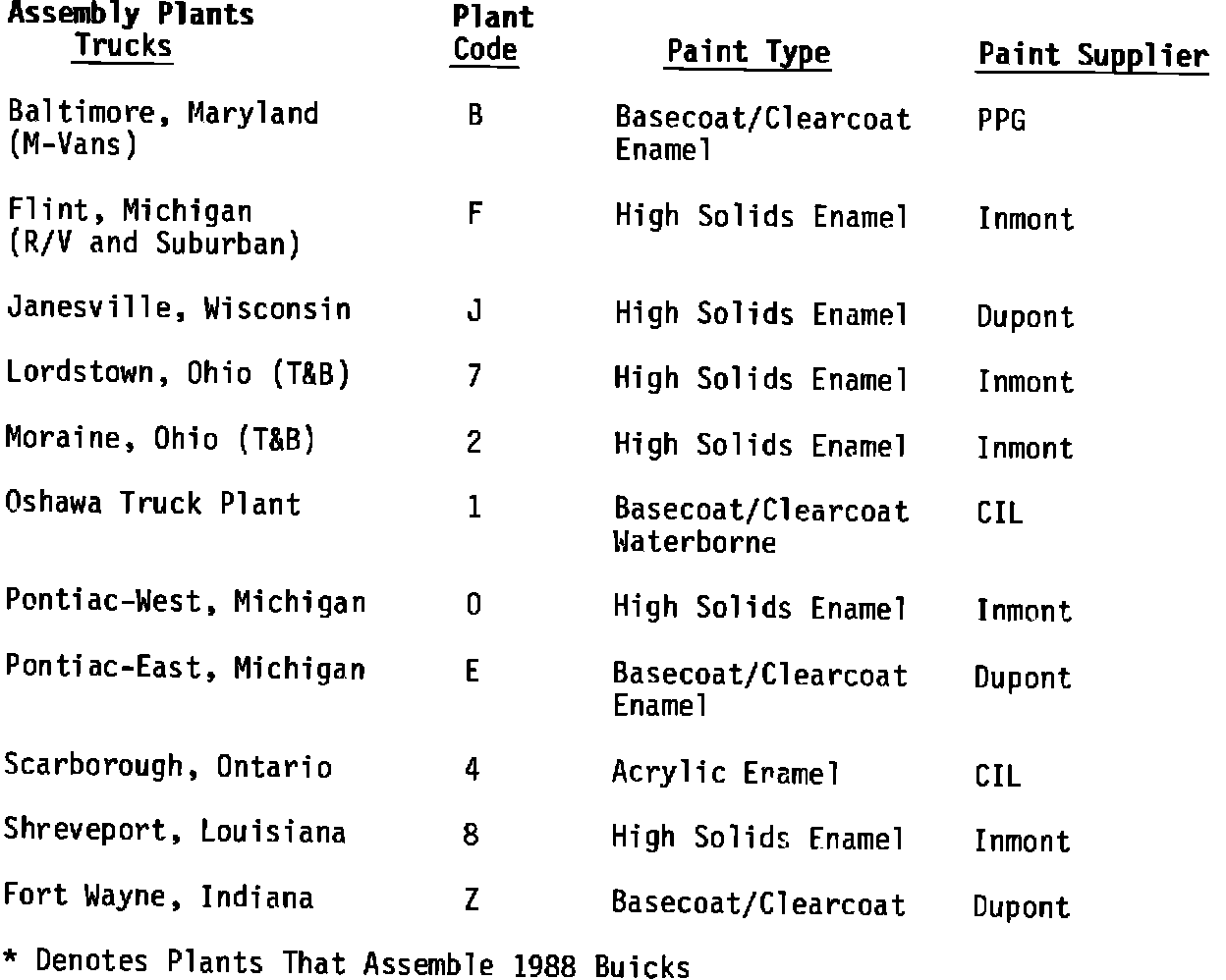 SUBJECT: ASSEMBLY PLANT PAINT IDENTIFICATION