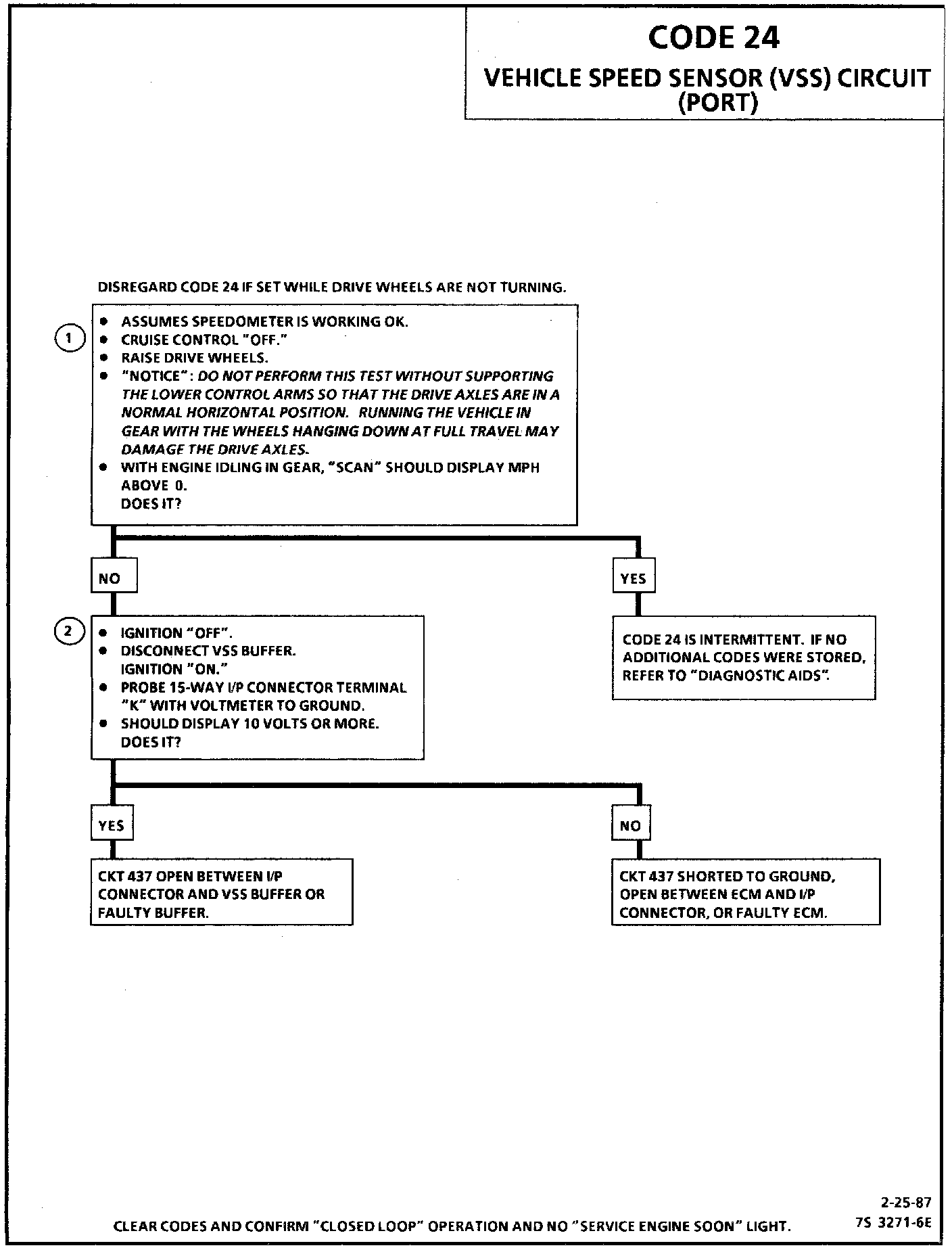 1. Code 24 will set, if vehicle speed equals 0 mph when: