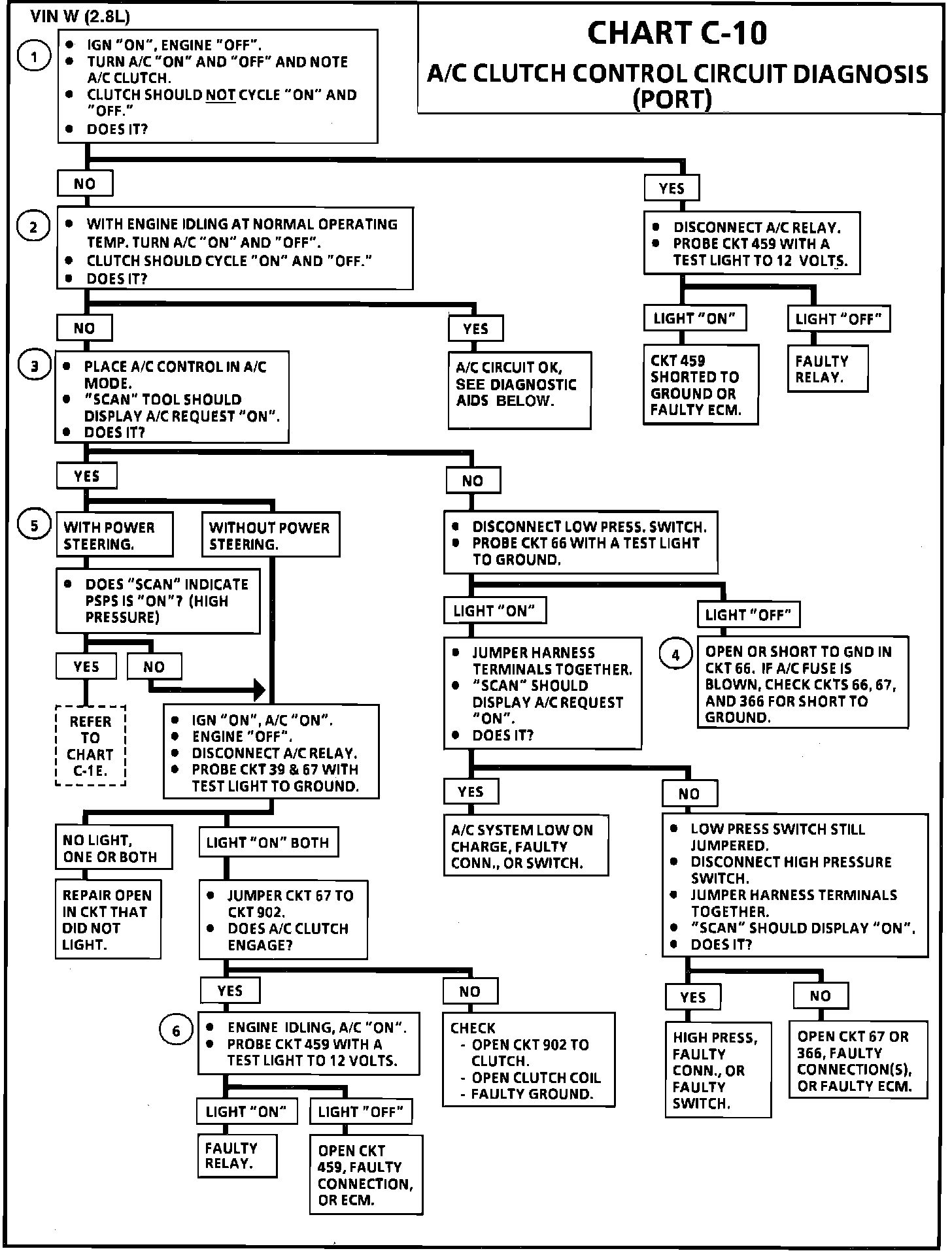 CHART C-10 A/C CLUTCH CONTROL CIRCUIT DIAGNOSIS