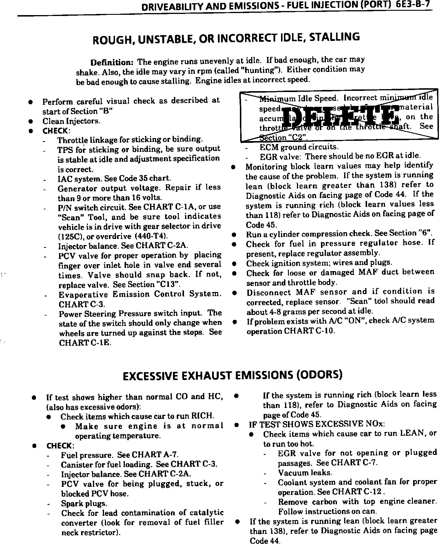 The following service information revises the recommended diagnostic procedure (reference sheet 6E3-B [symptoms] of the Service Manual) for rough, unstable or incorrect idle and stalling at idle for 1988 Buicks equipped with a 2.8L V-6 MPFI engine (VIN Code W).