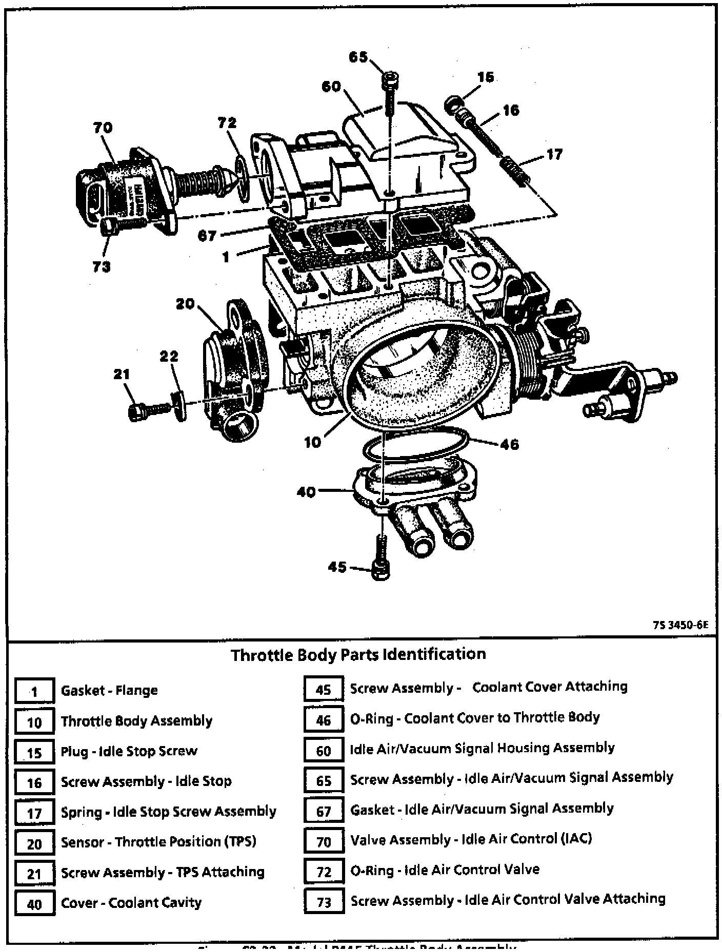 CAUTION: Throttle body should not be soaked in an immersion-type cleaner. Loss of factory installed lubricant could result. The Throttle Position Sensor(TPS) and Idle Air Control (IAC) valve should NOT come in contact with solvent or cleaner as they may be damaged.