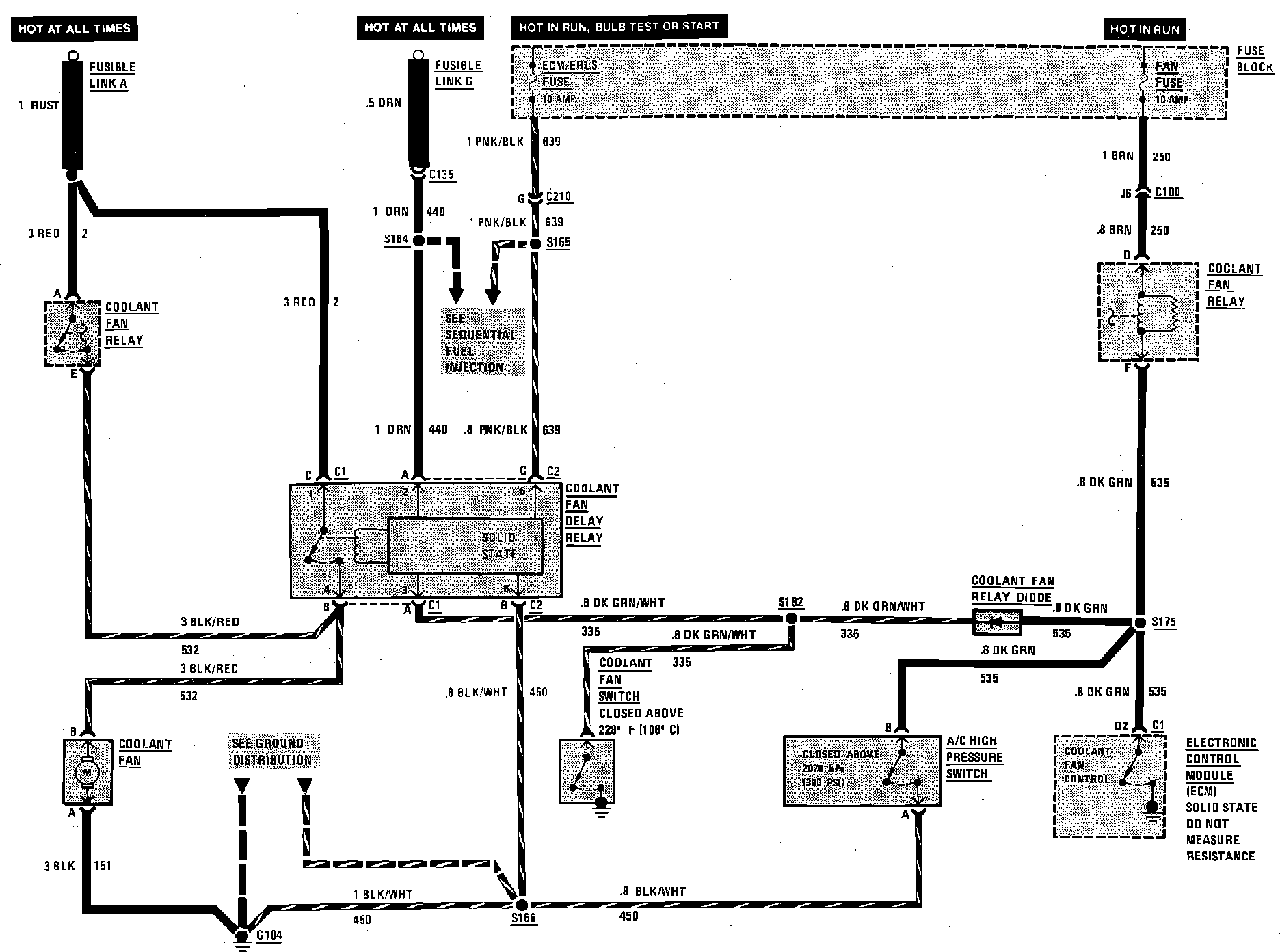 Coolant Fan Wiring Circuit (With Air Conditioning, Less Heavy Duty Cooling).: