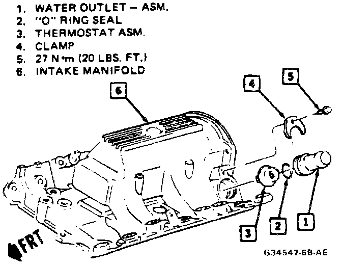 1. Drain the coolant until it is below the level of the thermostat, then remove the water outlet assembly.