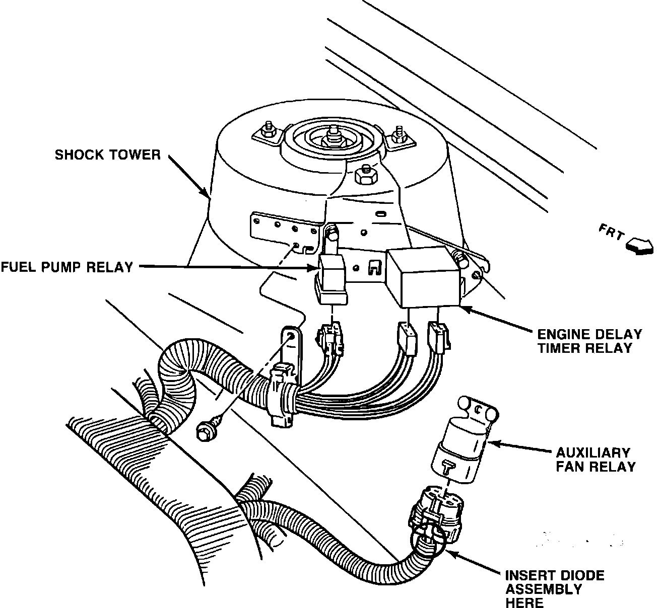 11. Plug the relay connector into the auxiliary fan relay. Reconnect the negative battery cable.
