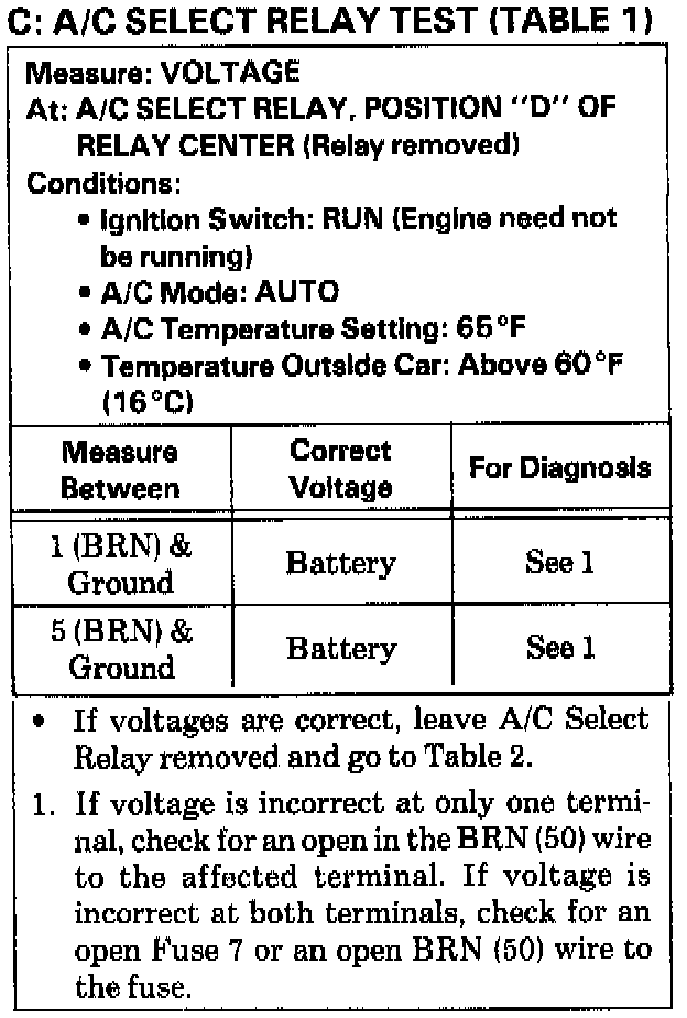 Test C: A/C Select Relay Test