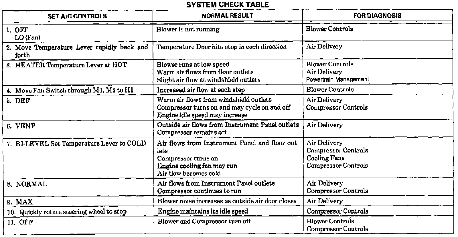 ^ Use the System Check Table (see image) as a guide to normal operation. All of the checks can be performed without the use of tools or disassembly of components.