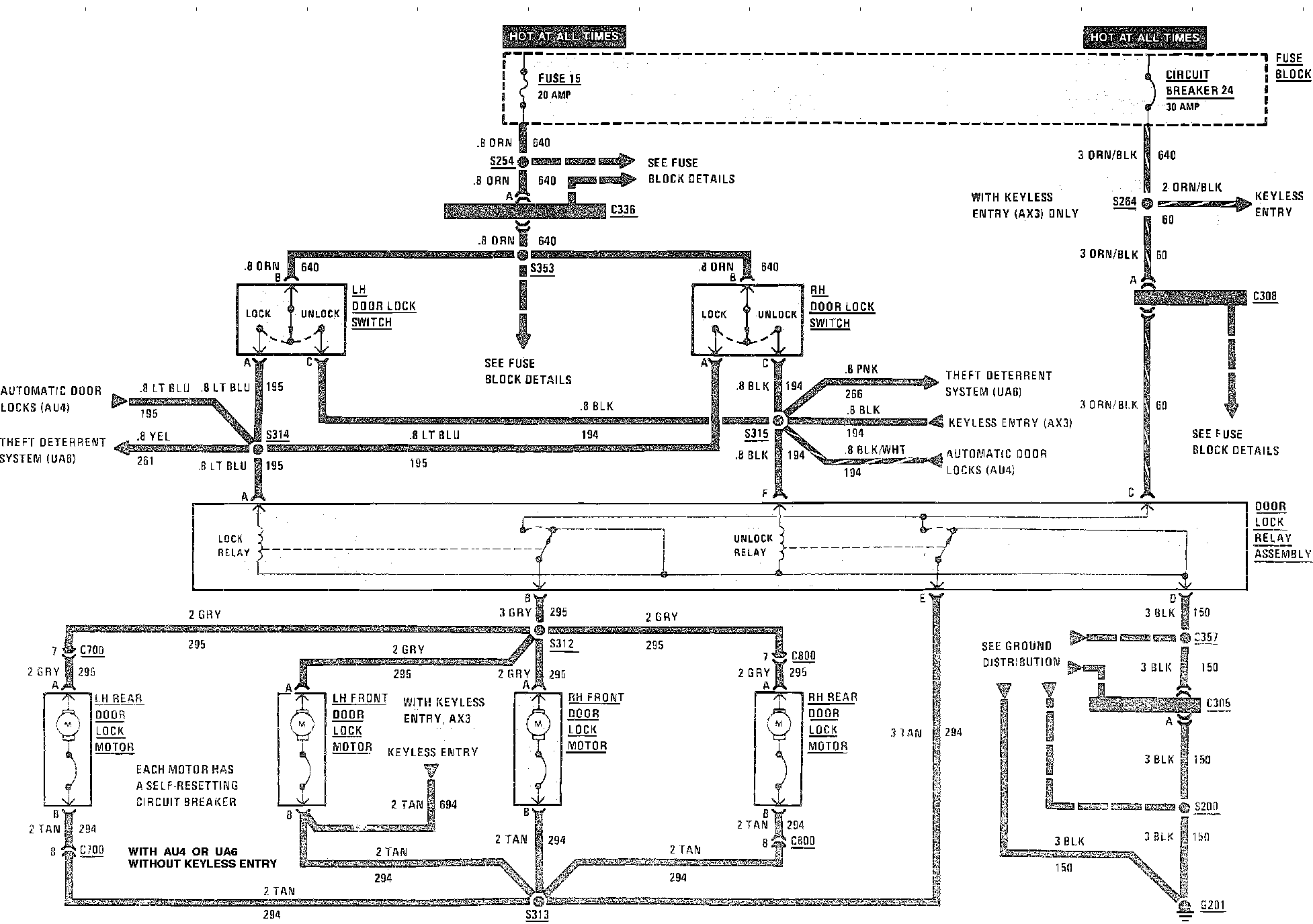 Power Door Locks Wiring Circuti (W/Keyless Entry & Theft Deterrent):