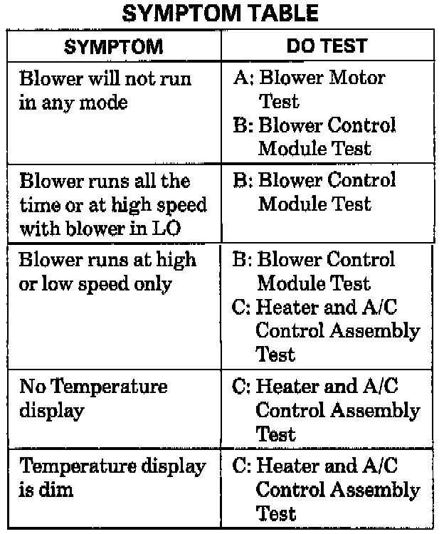 Do the tests listed for your symptom in the Symptom Table (see image).