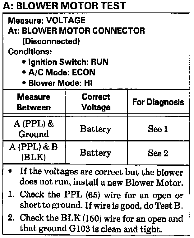 Test A: Blower Motor Test