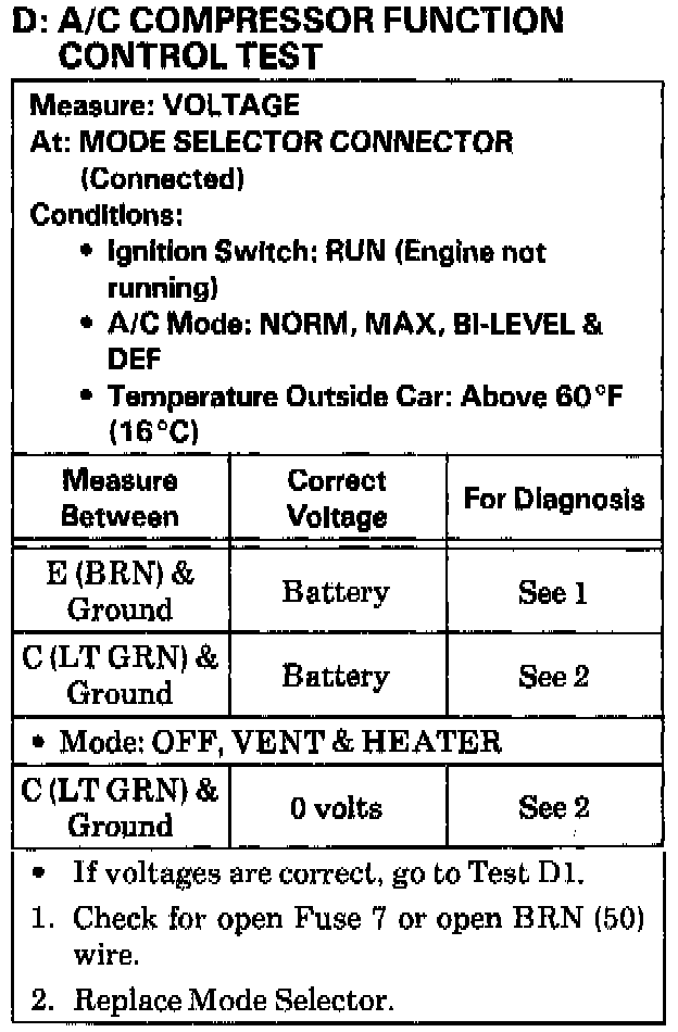 D: A/C Compressor Function Control Test: