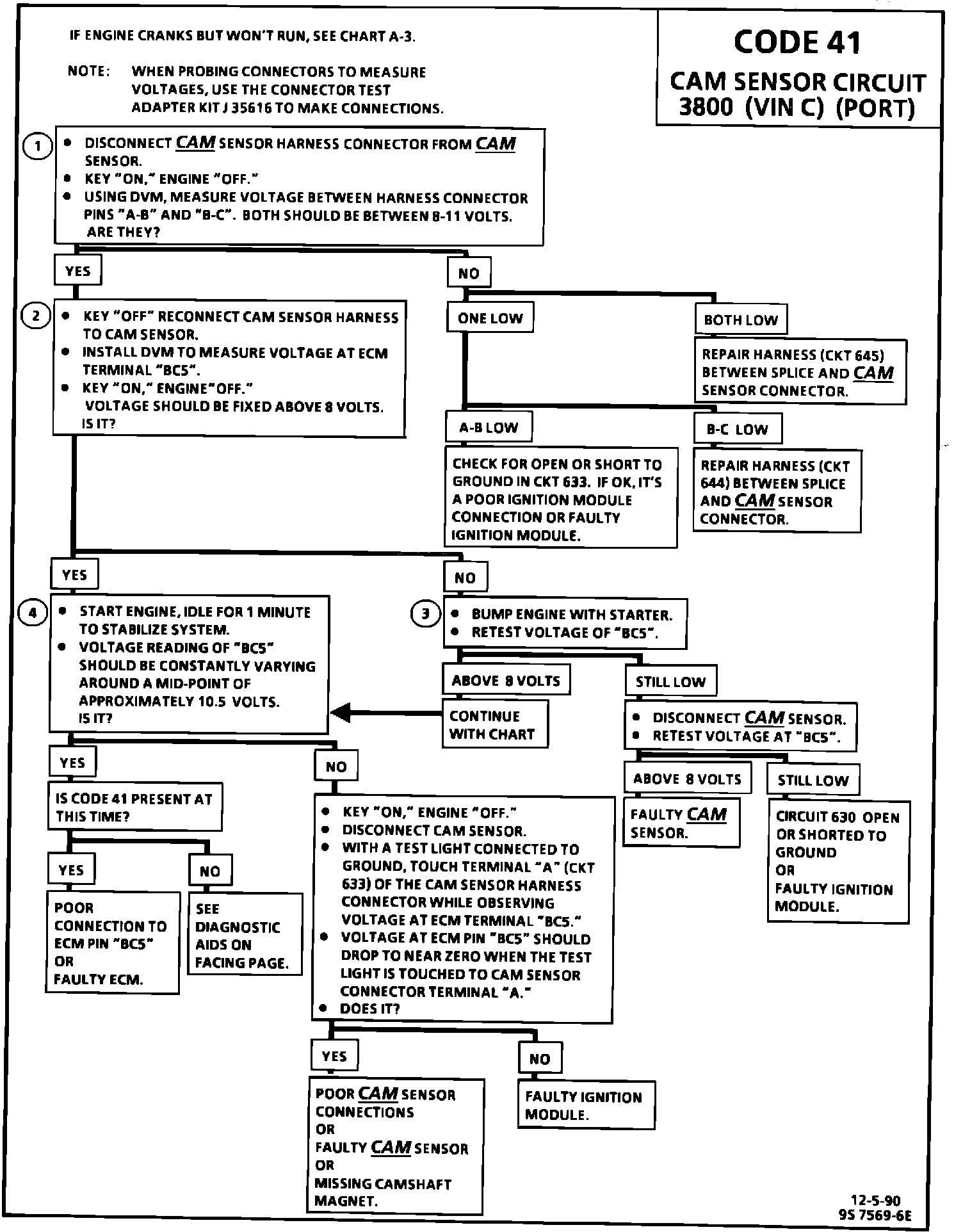 This bulletin updates the Code 41 Diagnostic Chart and Facing Page in "Driveability And Emissions" Section 6E3 for 3800 (VIN C) equipped 1988-1991 LeSabre and 1988-1990 Park Avenue models.