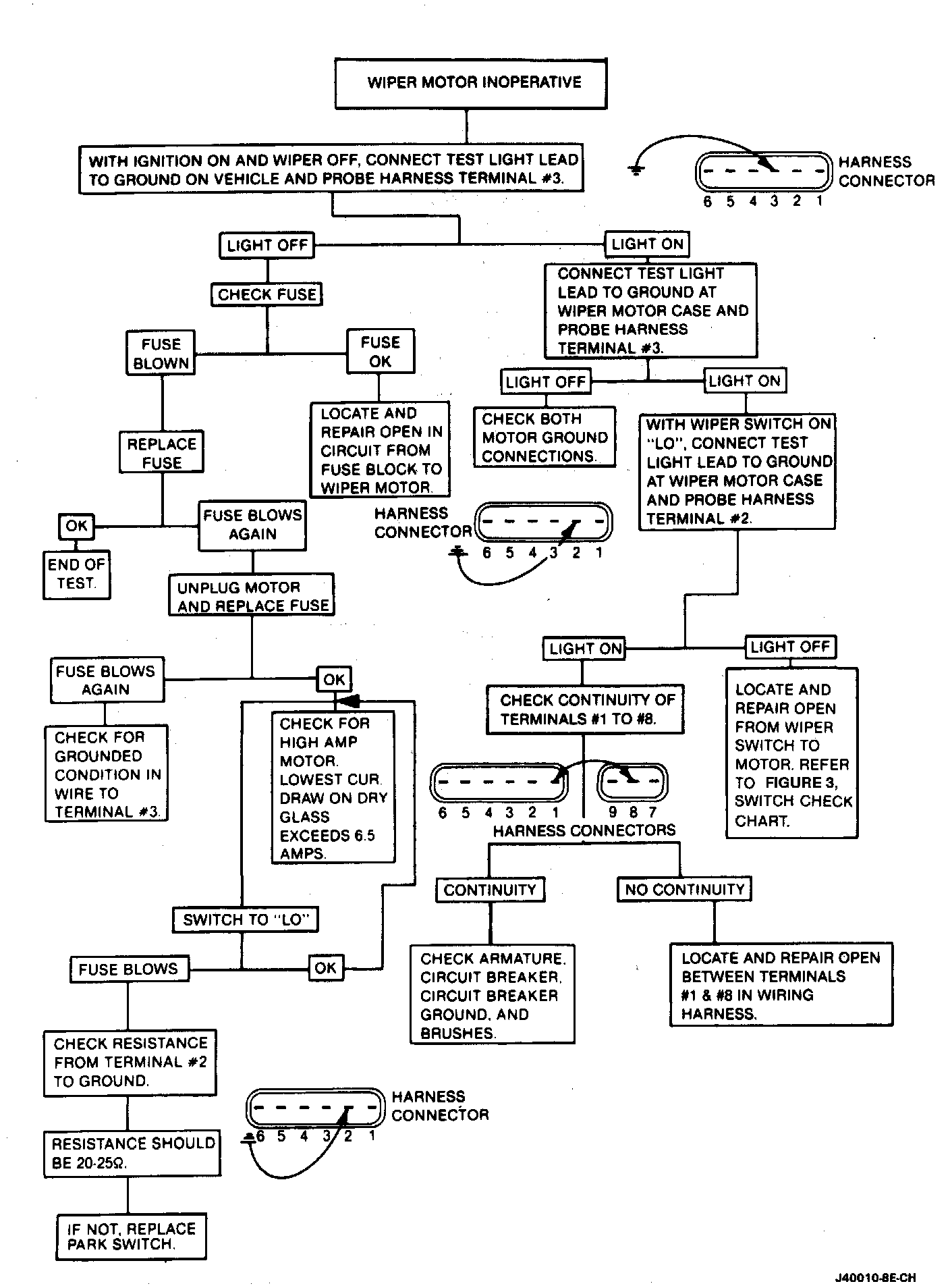 3. If the wiper motor is inoperative, refer to Figure 4.