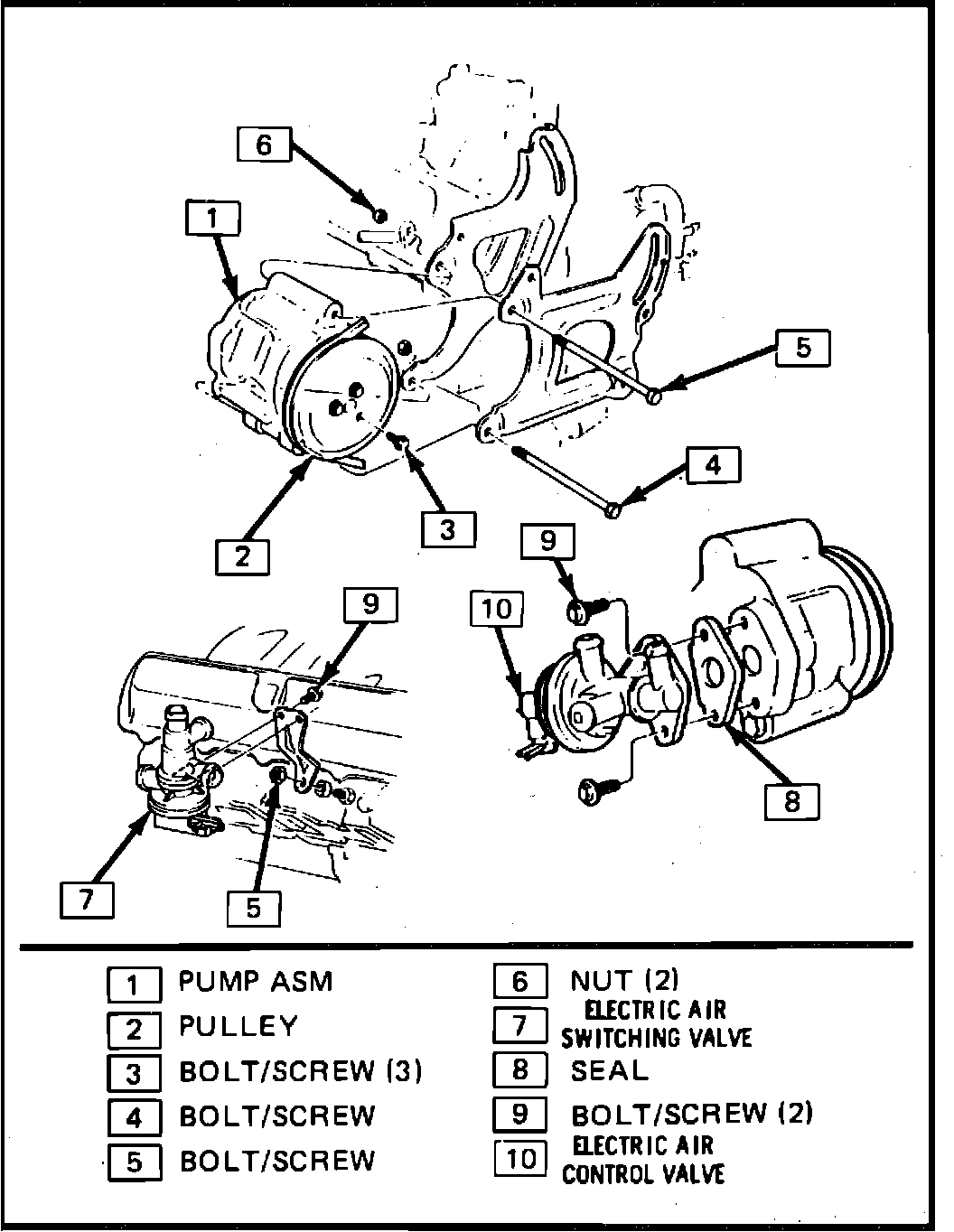 The system uses vacuum operated ECM controlled valves which combine both the divert function and the A.I.R. switching function as two valves in series. These are the electric divert valve and the electric air switching valve.