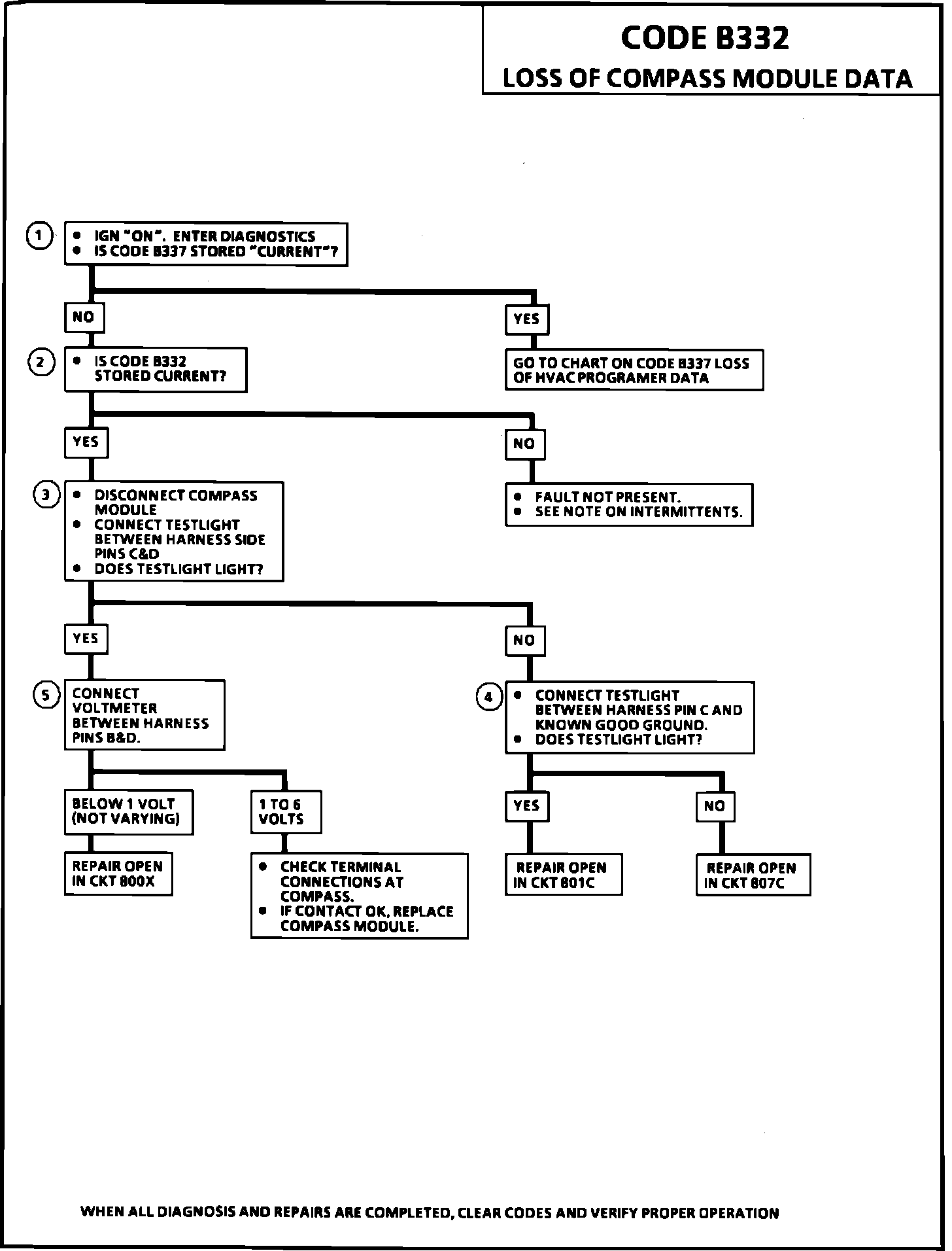 If code B332 shows up as history, check for intermittent opens in CKT's 801E, 807C, and/or 800X. The problem will not be a short in these CKT's as this would prevent on-board diagnostics from operating.