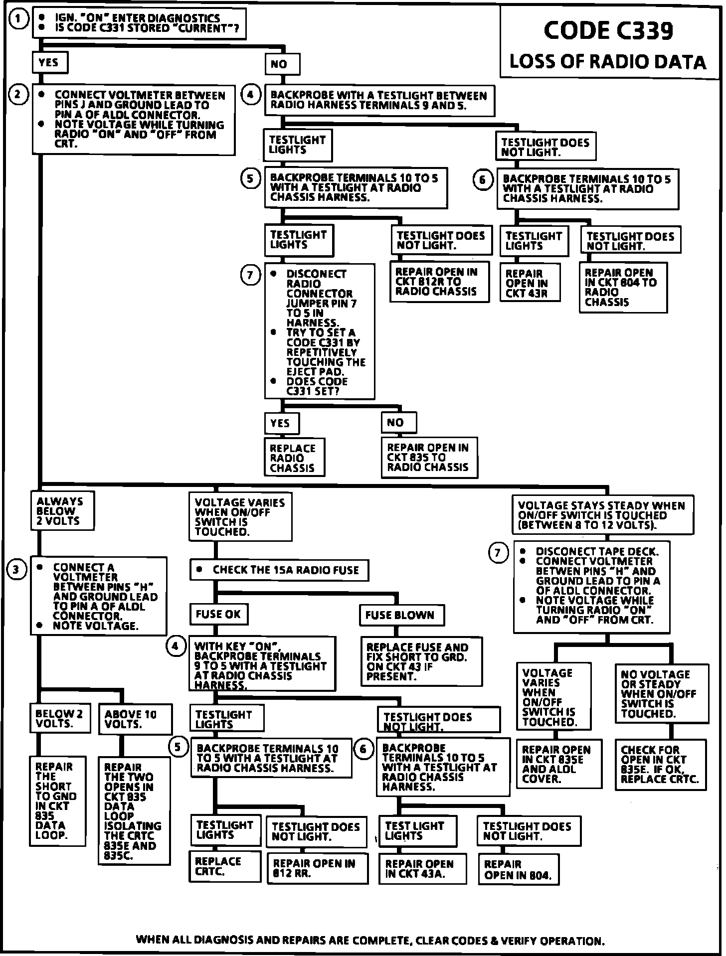 Code C339 will set if the CRTC cannot communicate with the radio when the ignition is "ON" and the CRTC is sending a message to the radio that requires the radio to send a response back.