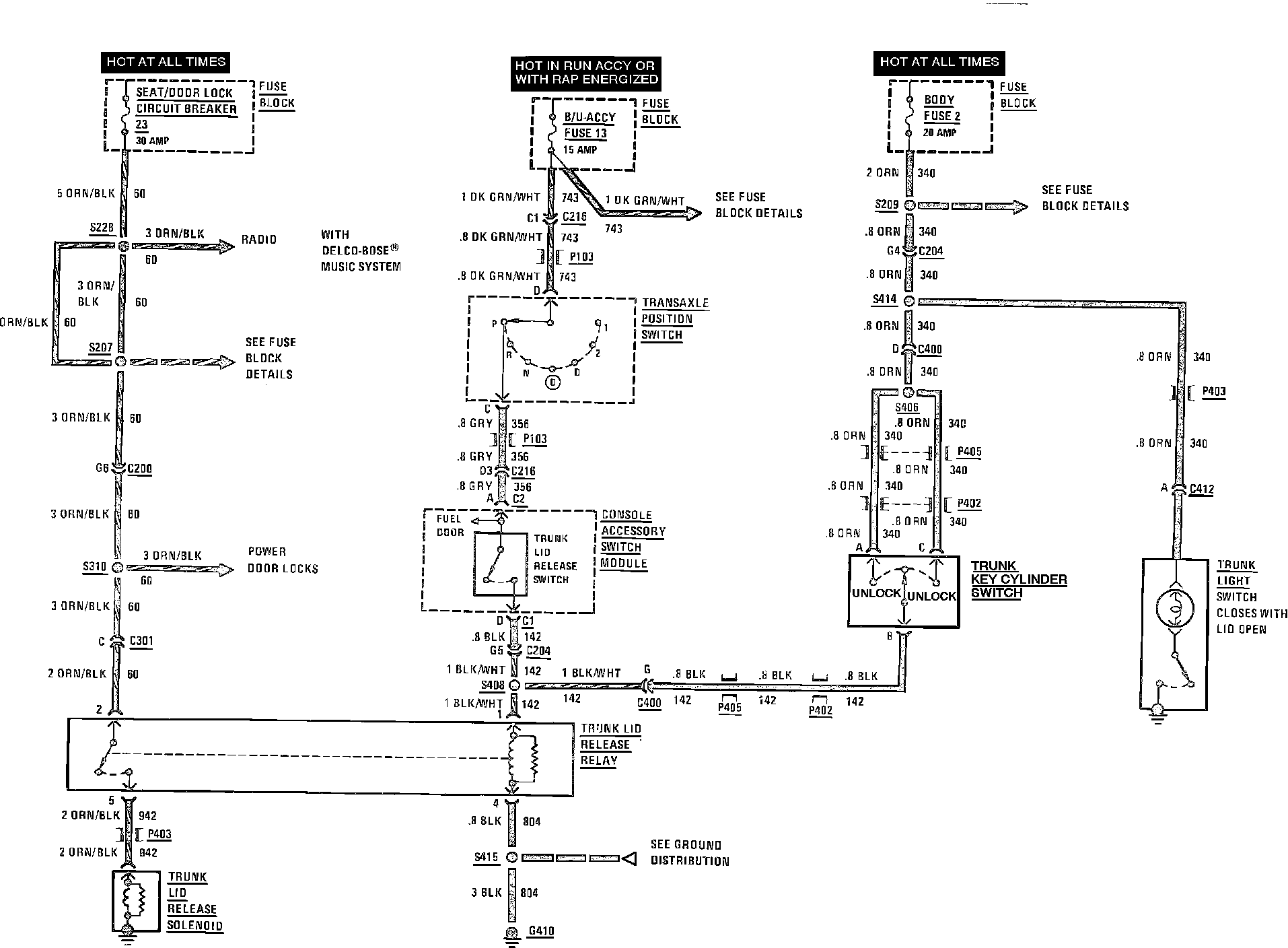 Trunk Lid Release Wiring Circuit: