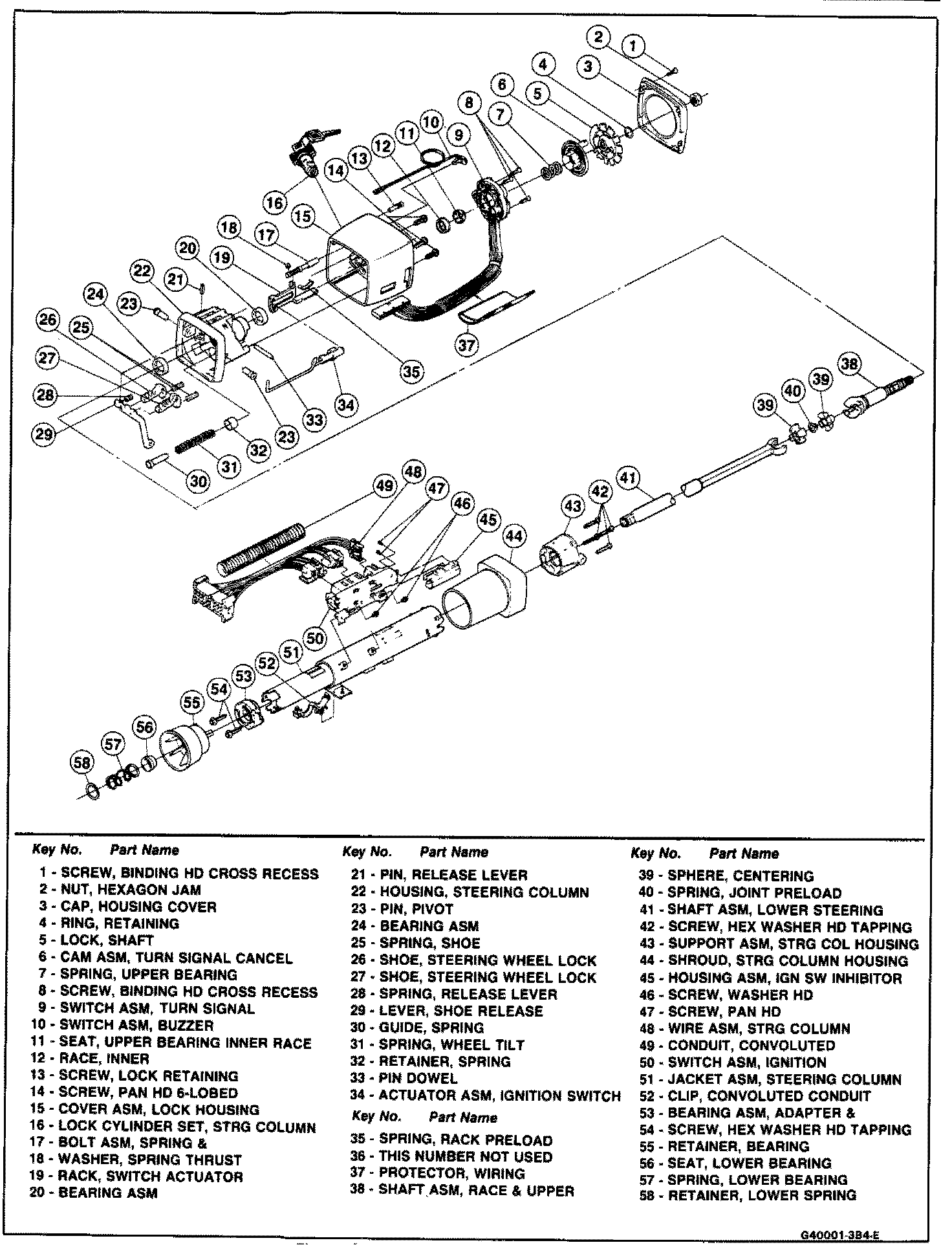 1. Turn signal connector through lock housing cover (15) and steering column housing shroud (44).