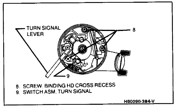 - Before removing turn signal lever, position switch so that screws (8) can be removed through opening in turn signal switch (9).