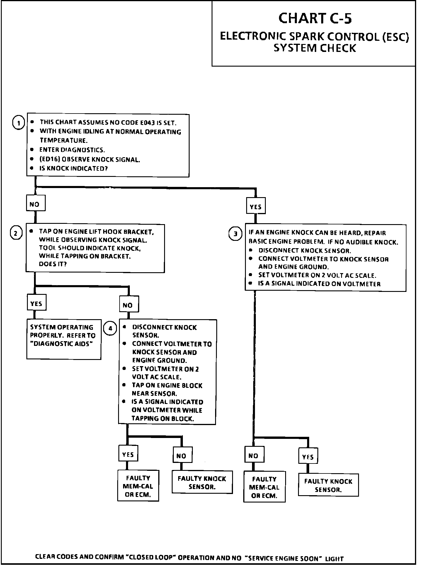4. This test determines if the knock sensor is faulty or if the ESC portion of the MEM-CAL is faulty. If it is determined that the MEM-CAL is faulty, be sure that it is properly installed and latched into place. If not properly installed, repair and retest.