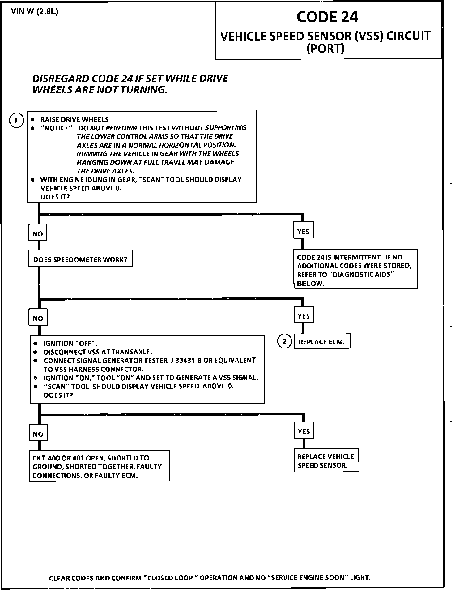 ^ These conditions are met during a road load deceleration. Disregard Code 24 that sets when drive wheels are not turning.