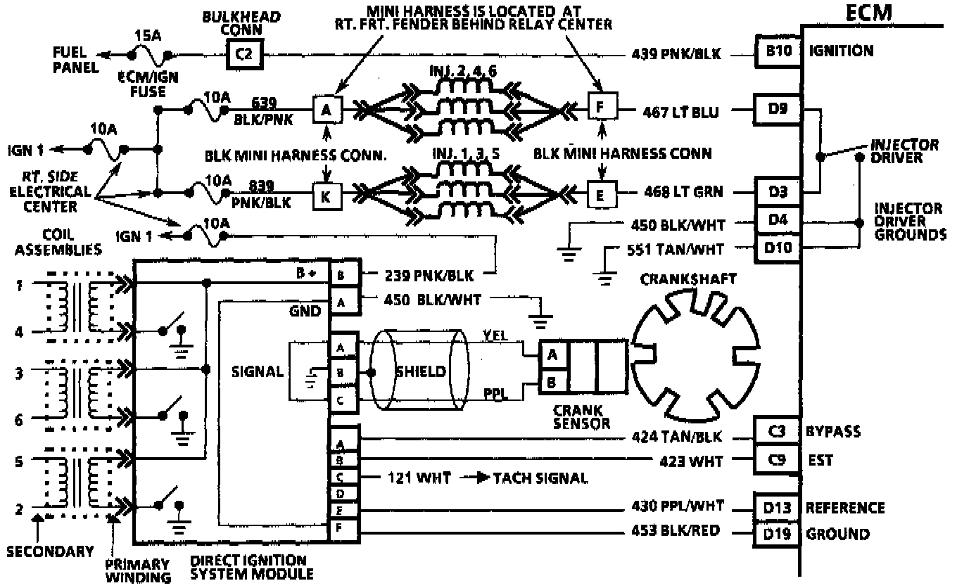 2. Checks for a normal EST ground path through the ignition module. An EST circuit 423 shorted to ground will also read less than 500 ohms; however, this will be checked later.