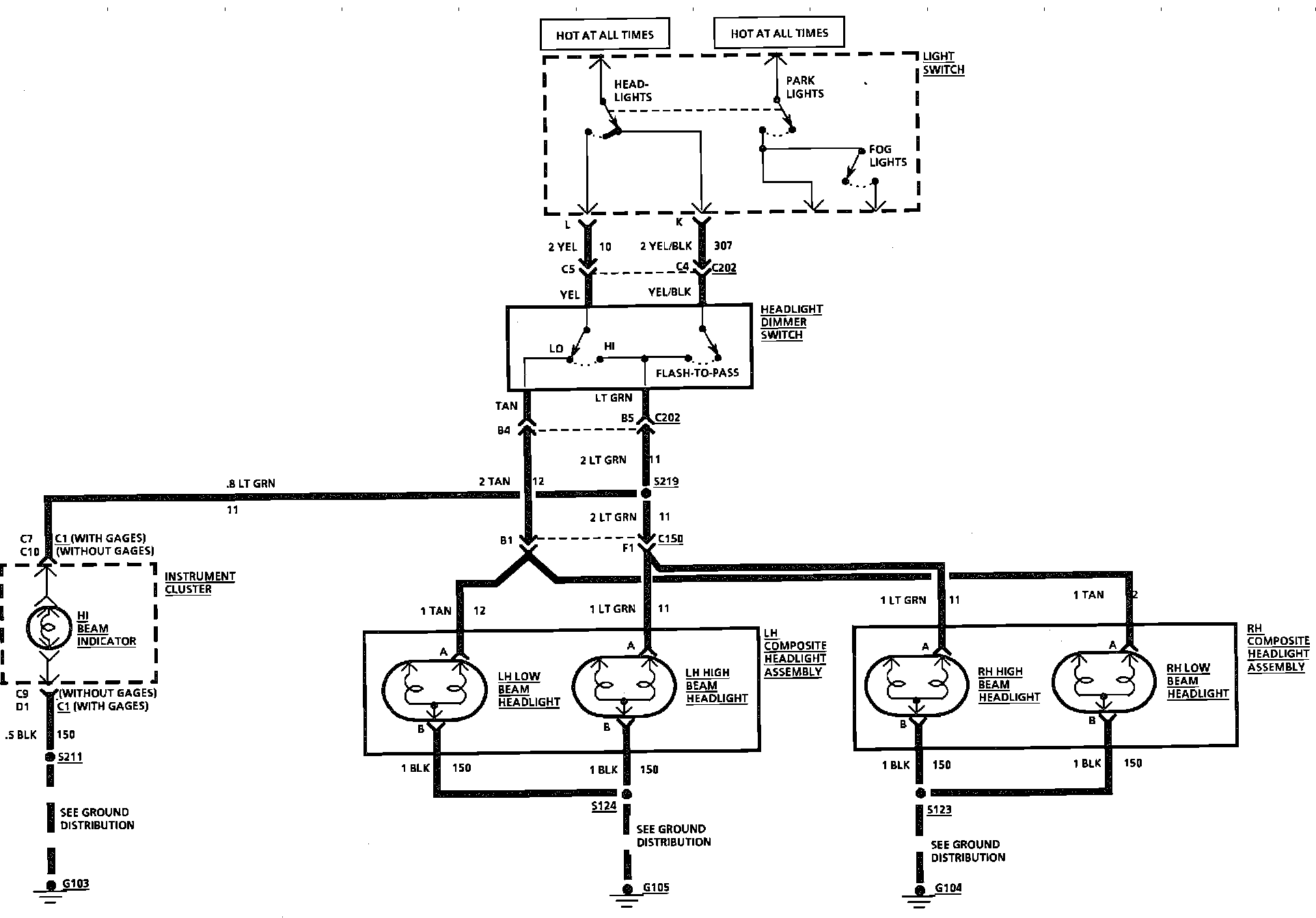 Headlamps Wiring Circuit (Less Fog Lamps):
