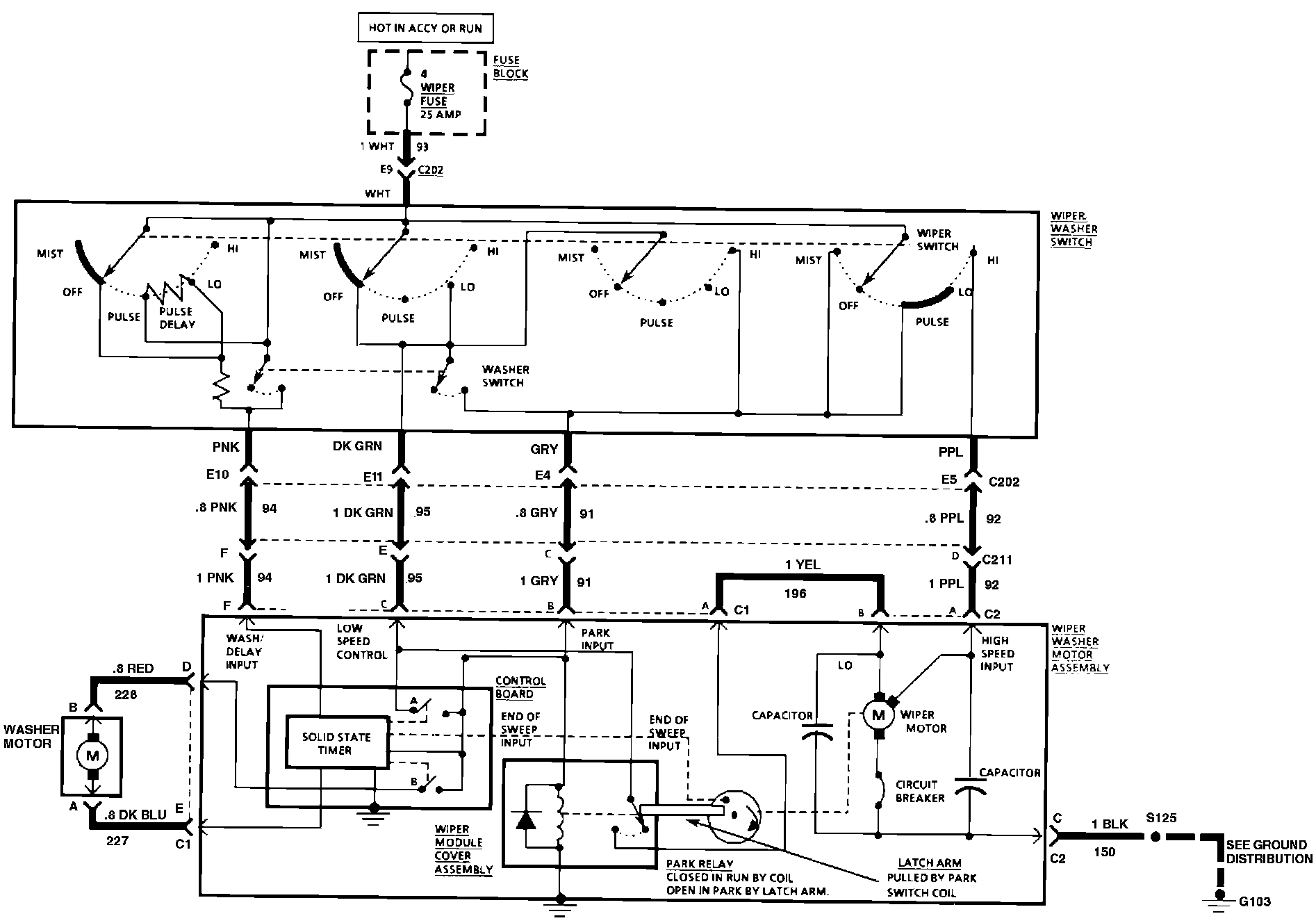 Washer & Wiper Wiring Circuit (With Pulse):