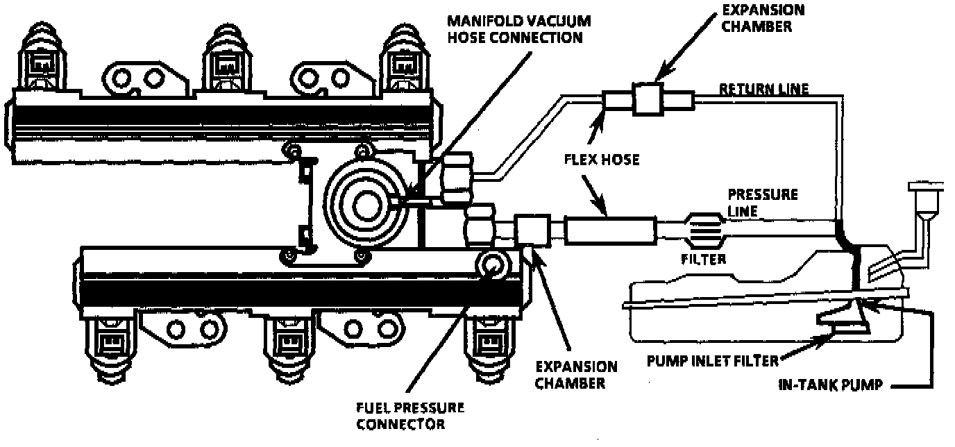 6. Restricting the the fuel return line allows the fuel pump to develop its maximum pressure (dead head pressure). When battery voltage is applied to the pump test terminal, pressure should be above 325 kPa (47 psi).
