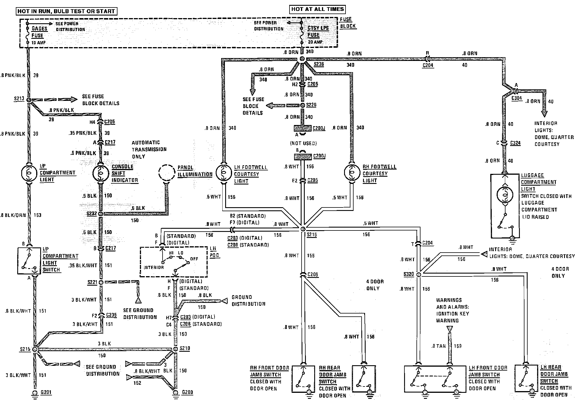Console, Footwell Courtesy, I/P & Luggage Compartment: