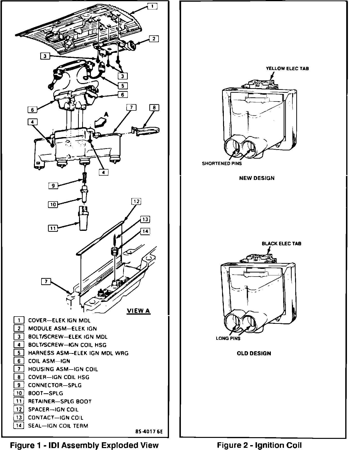 8. Refer to Figure 2, and inspect the two ignition coils for color of electrical tab. Ignition Coils with black electrical tabs are to be replaced with new coils having yellow electrical tabs (from kit P/N 10457062). Coils with yellow electrical tabs do not require replacement. It should be rare to find a campaign vehicle in which one or both coils already have yellow tabs.
