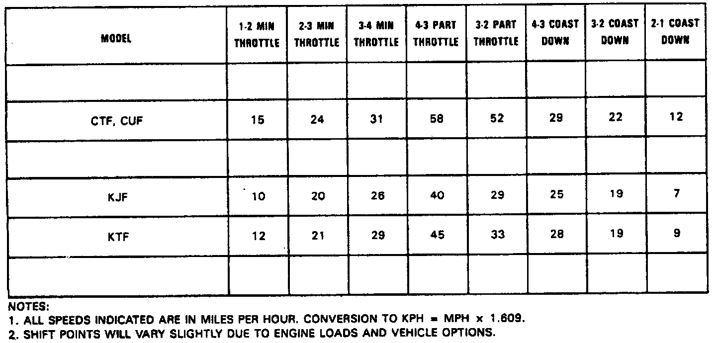 Speed Shift Charts