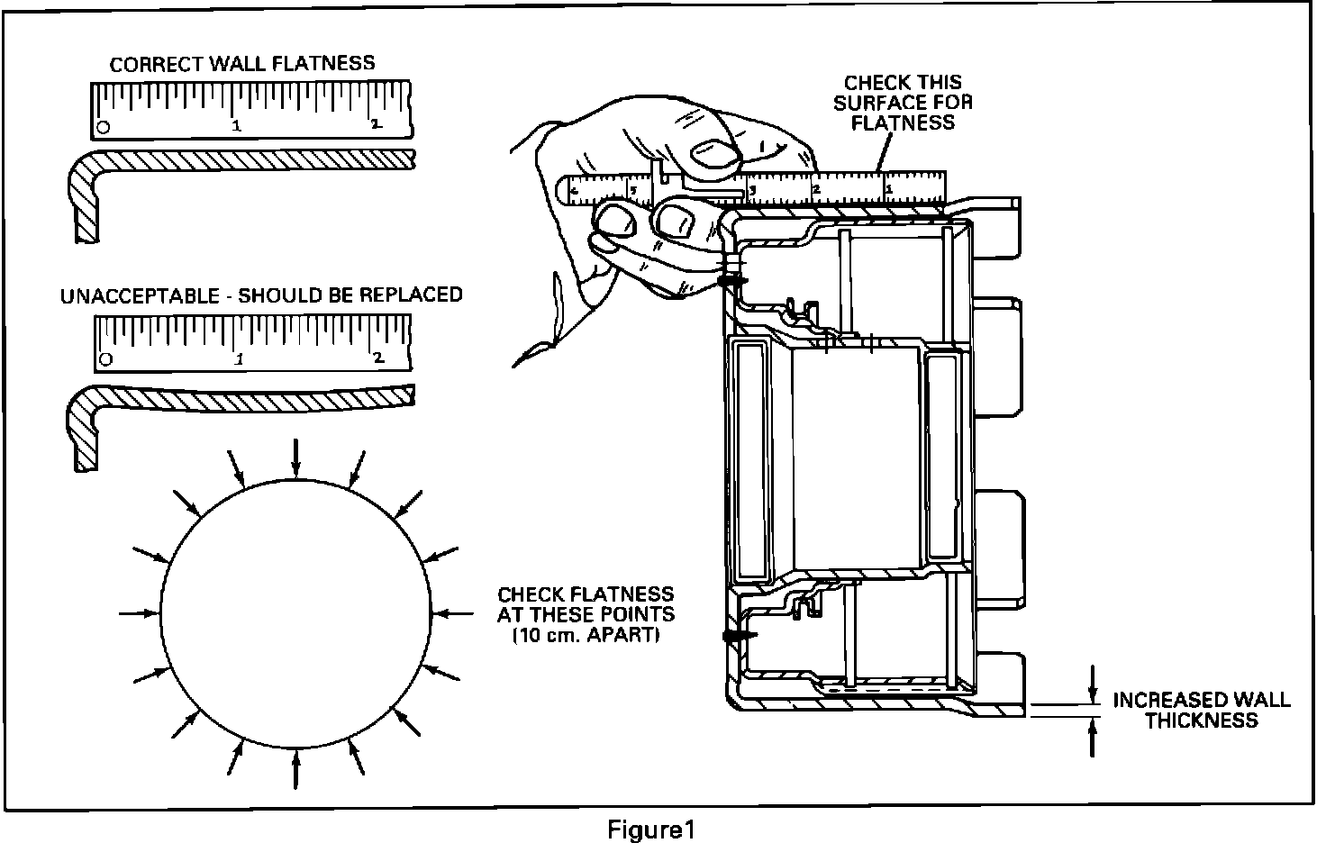 If an intermediate band failure occurs, inspect the outer wall of the direct clutch drum using a flat edge ruler. If there are dips in the drum between the ruler, the drum should be replaced.