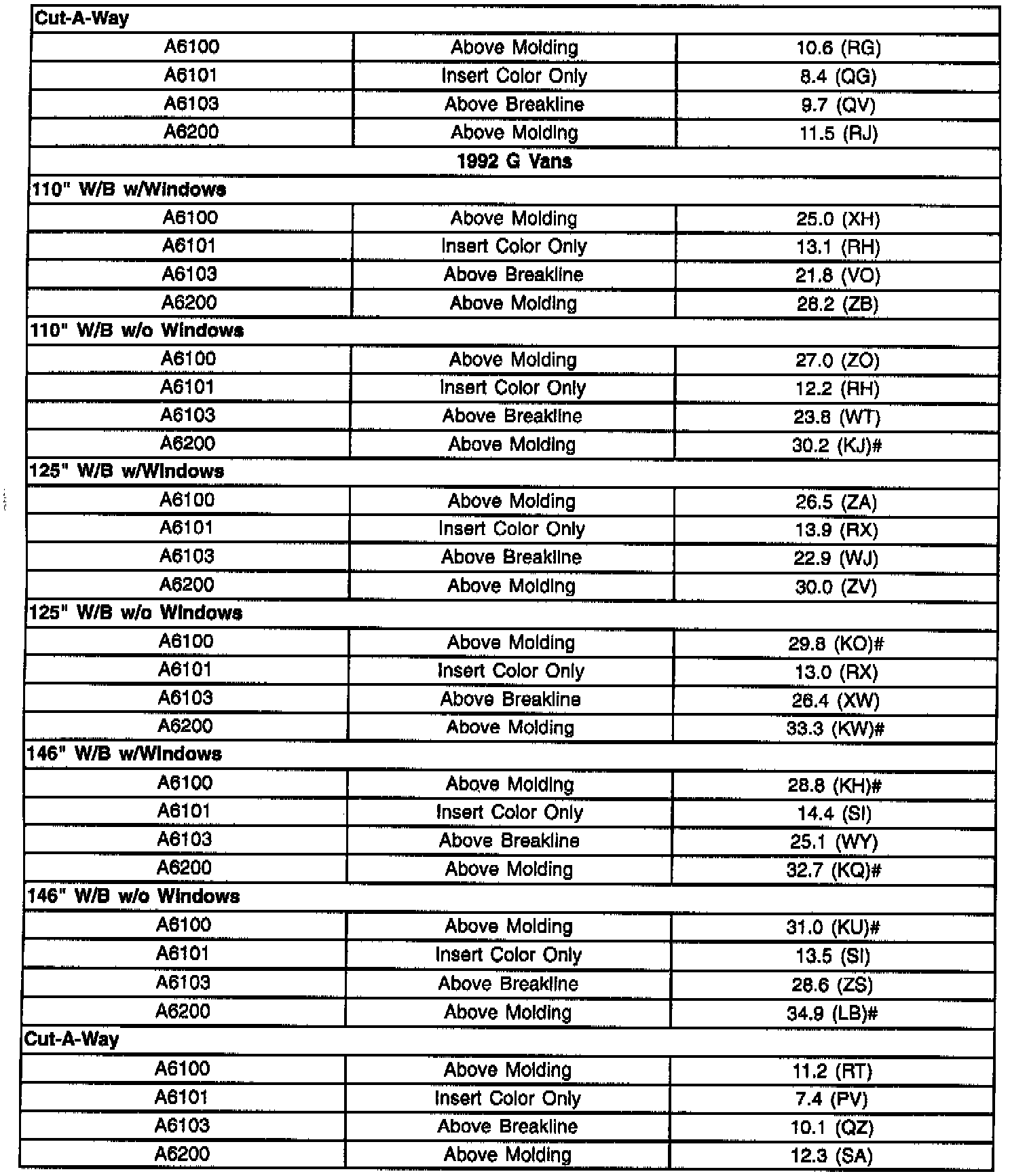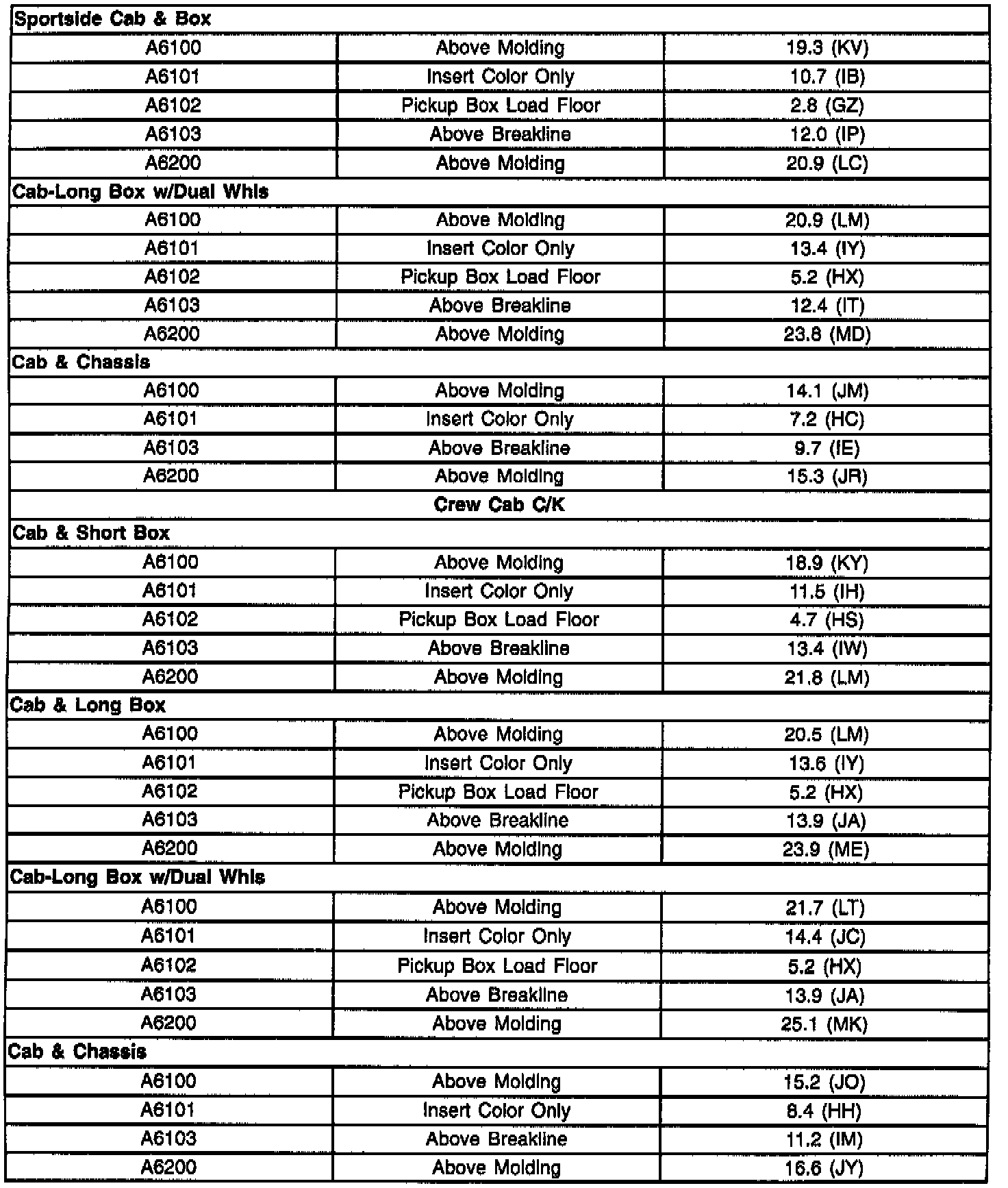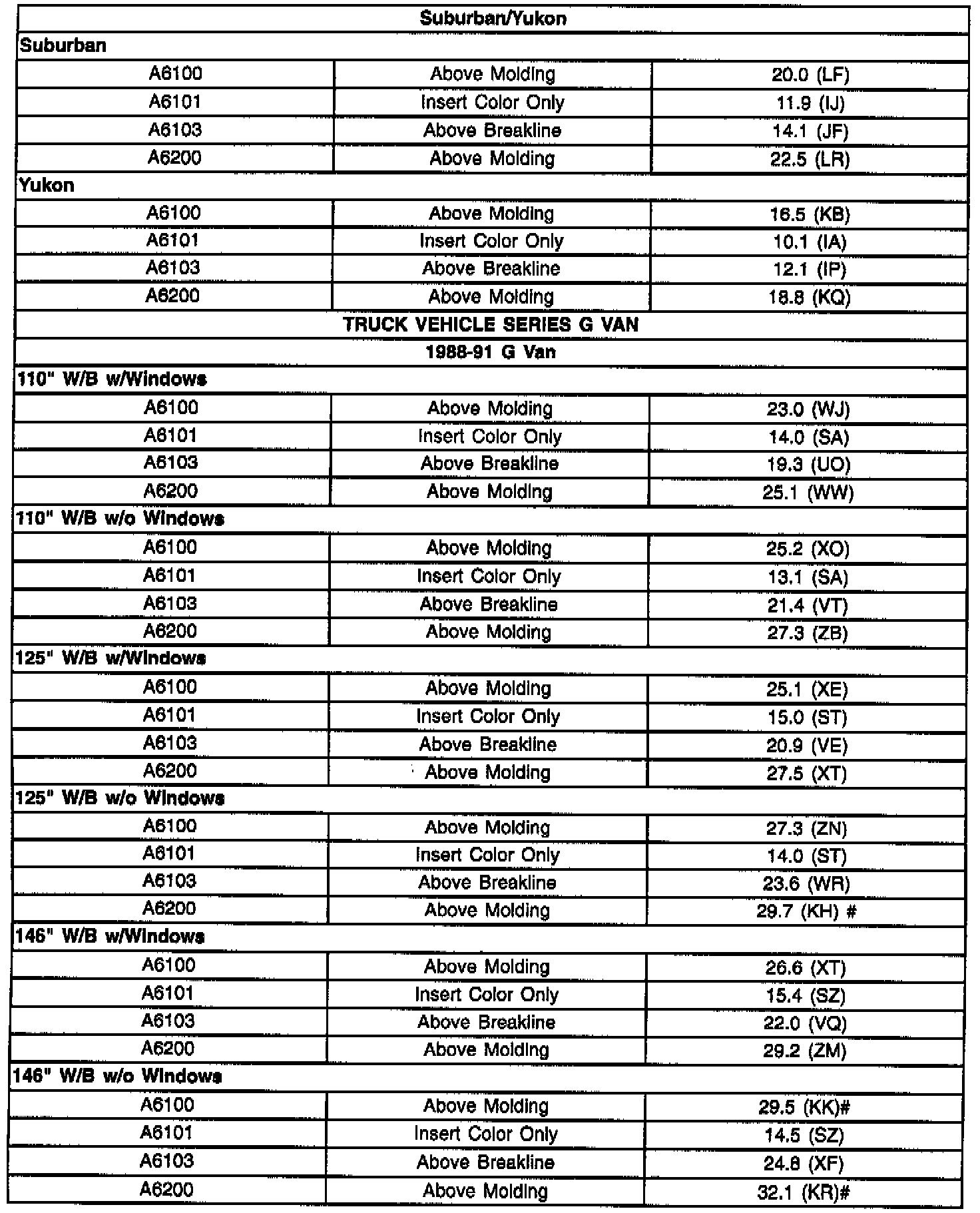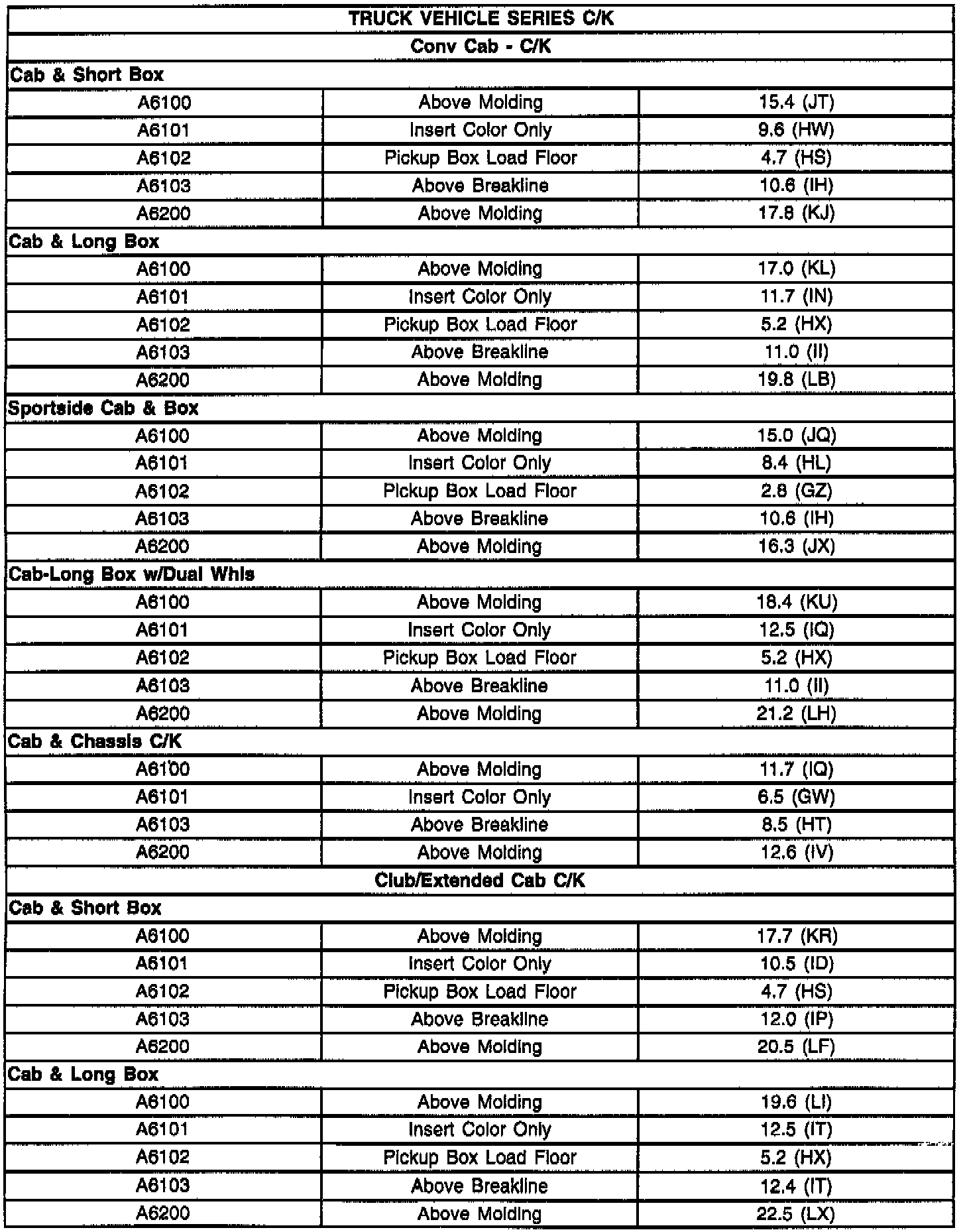 C/K (Suburban/Yukon) Truck (END) and G Van (Begin) Vehicle Series Chart
