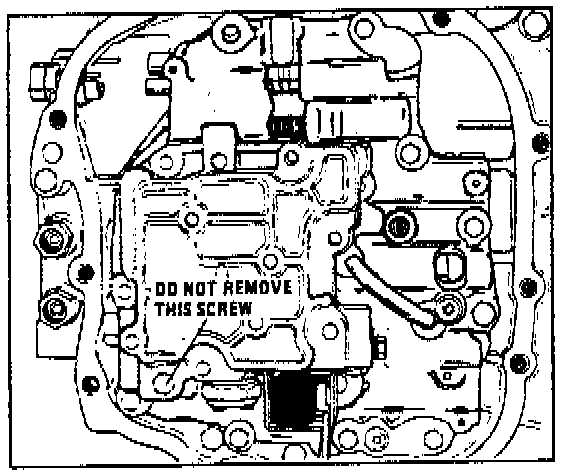 a. Remove all the auxiliary valve body screws except the one shown in Fig. 10. Loosen, but do not remove this screw, then remove the remaining control valve retaining screws.