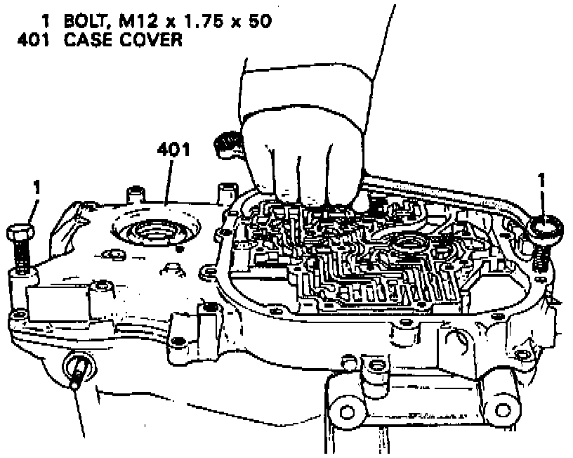 b. Alternately tighten bolts until bottomed. Bolts will self tap and separate case and cover. Use caution not to pry on case cover.