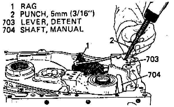 5. Install manual shaft and parking lock actuator rod into case and push through driven sprocket support. Install manual valve rod into manual detent lever.