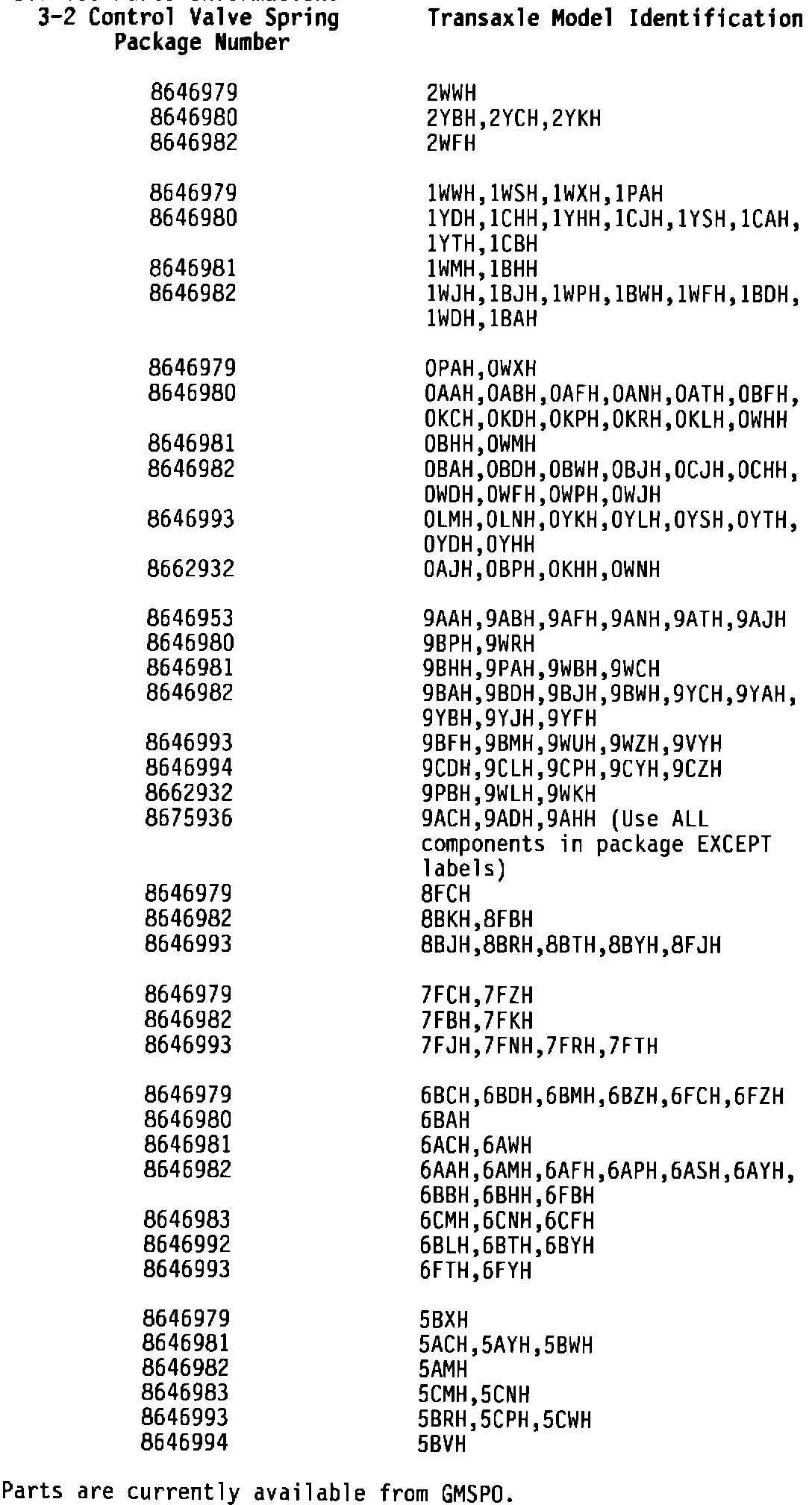 Service replacement Transaxle Assemblies (SRTA) are built with original calibrations and may need to be updated with a service 3-2 control valve spring per customer requirements.